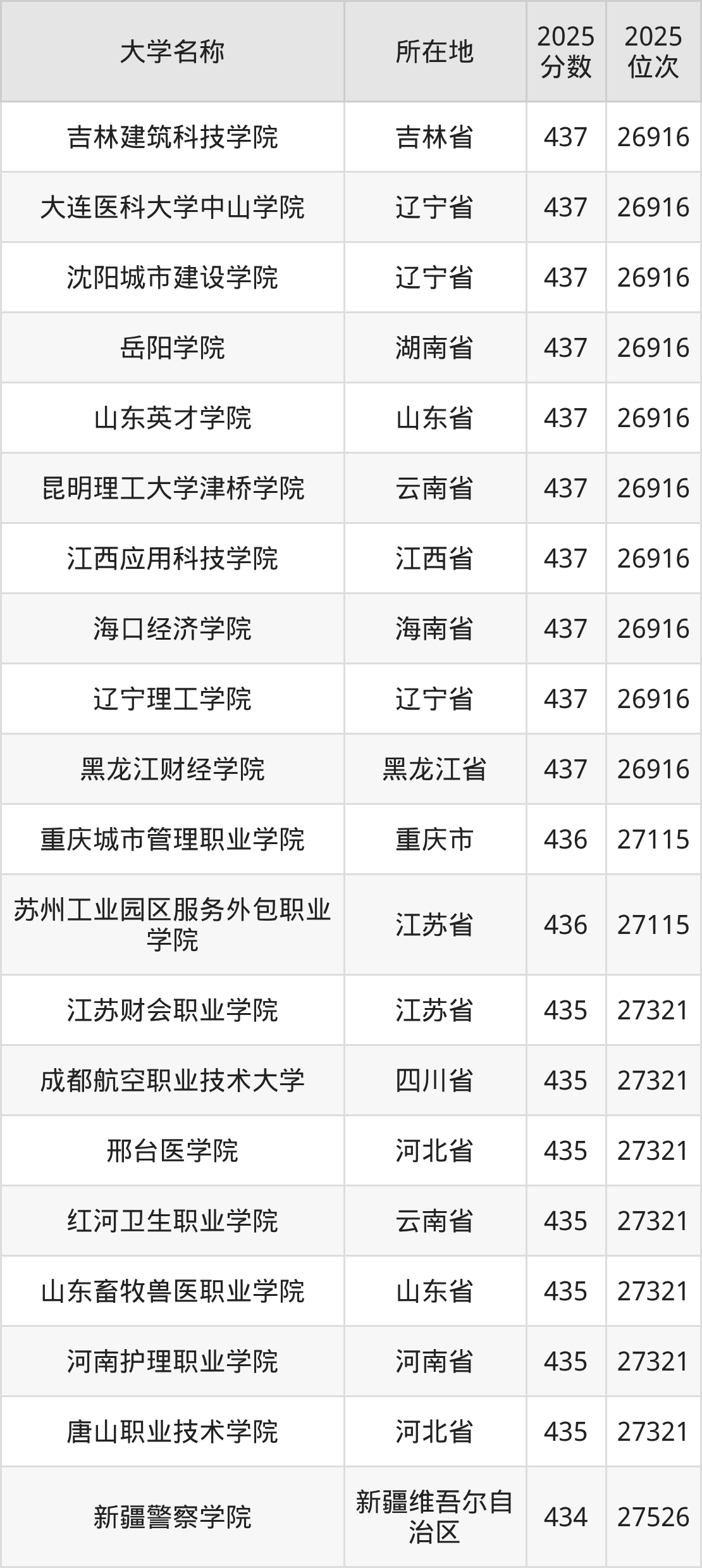小编依据圆梦志愿平台提供的全国高校在辽宁省招生录取数据,精心筛选并整理了针对2026年辽宁考生的一份重要参考:列出了2025年录取位次接近辽宁省第27000名的大学清单。