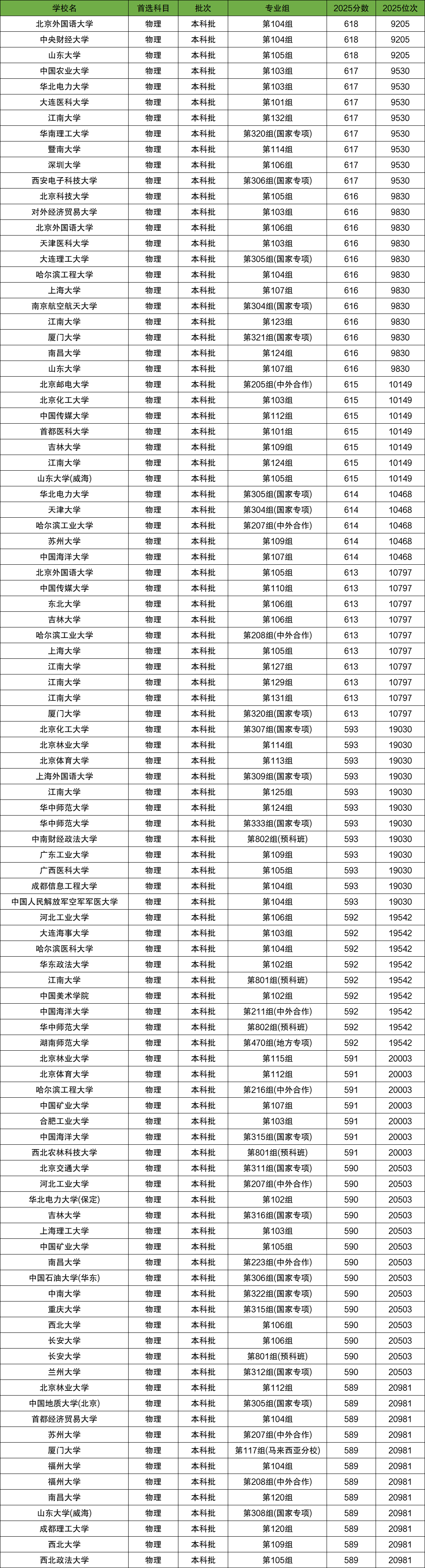 2025年全国大学物理类在湖南本科录取最低位次范围为98名~267846名,其中: