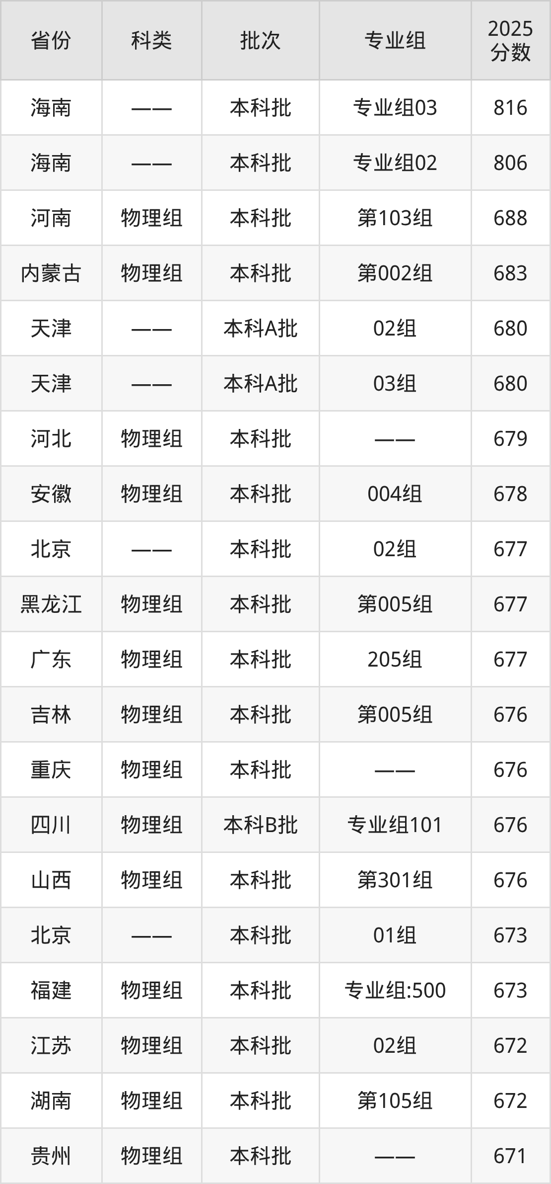 而海南地区考生的分数门槛最高,2025年浙江大学专业组03在海南招生最低分为816分,考生至少要超本科线336分才有可能被录取。