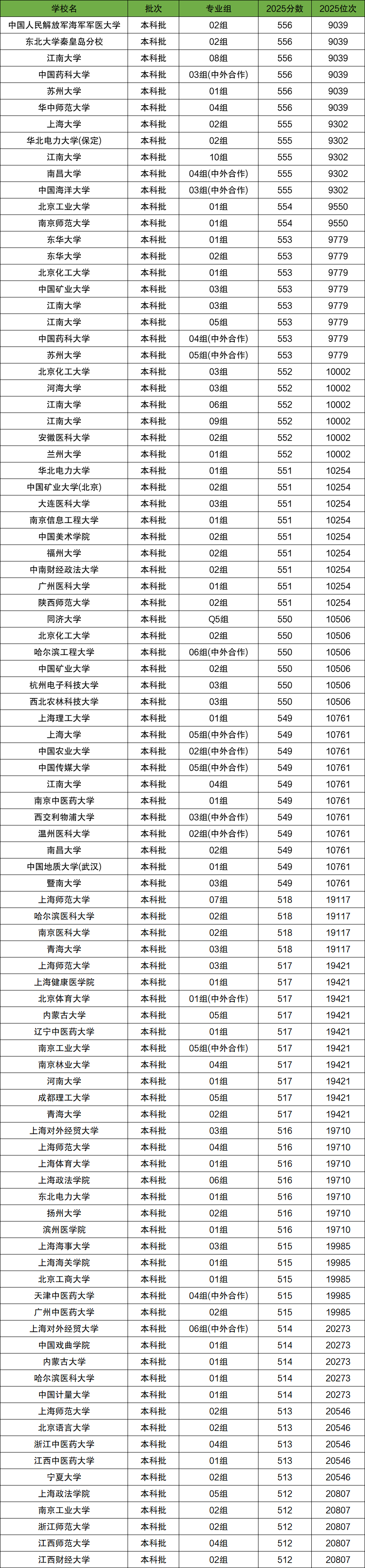 2025年全国大学在上海本科录取最低位次范围为52名~49276名,其中: