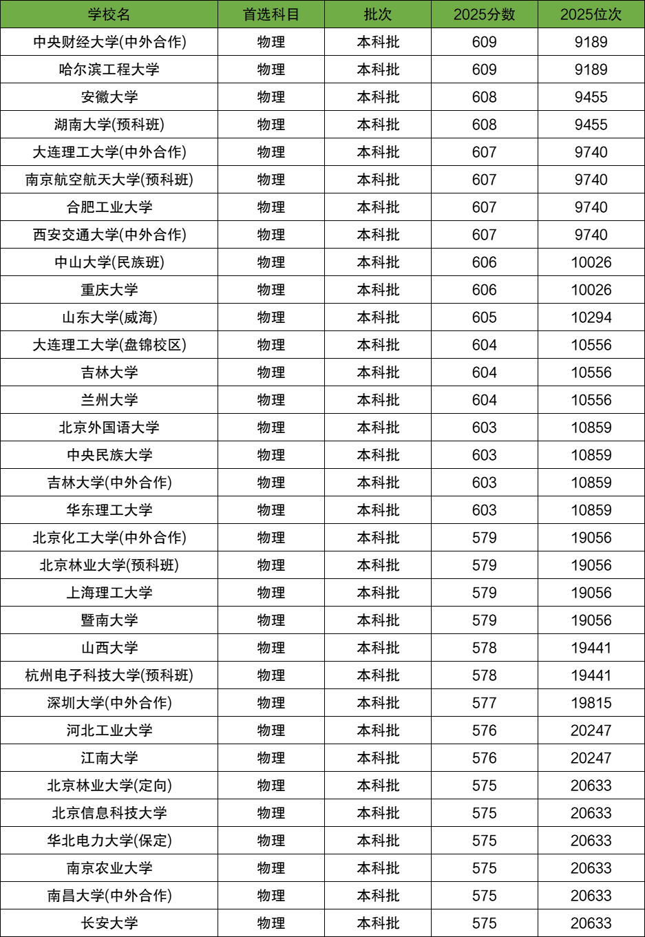 2025年全国大学物理类在重庆录取最低位次范围为159名以内~139478名,其中: