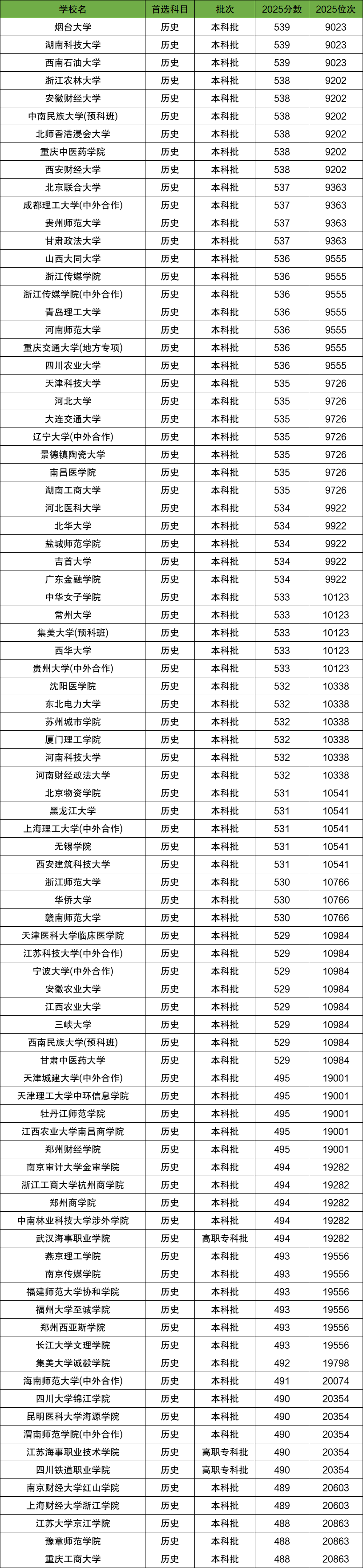 2025年全国大学历史类在重庆录取最低位次范围为66名以内~73373名,其中:
