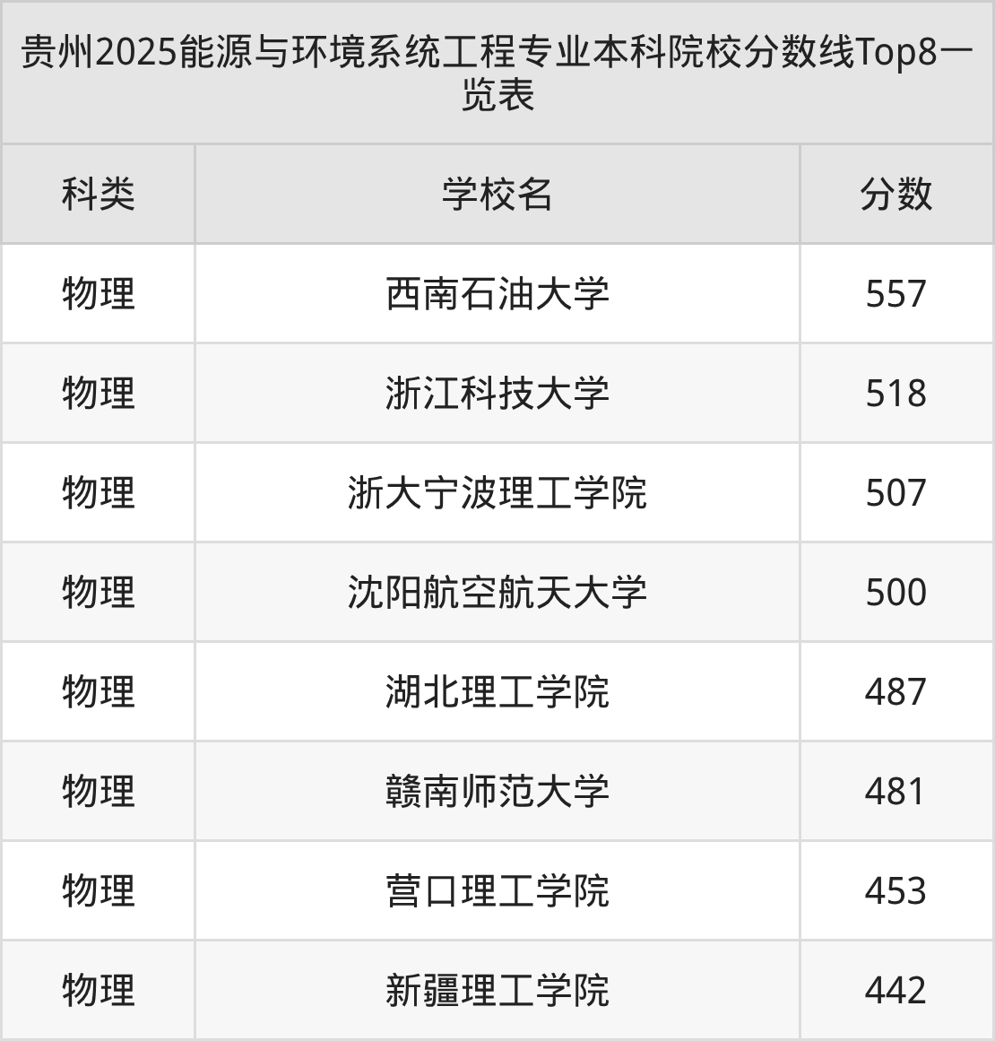 以贵州高考2025年专业招录分数为例: