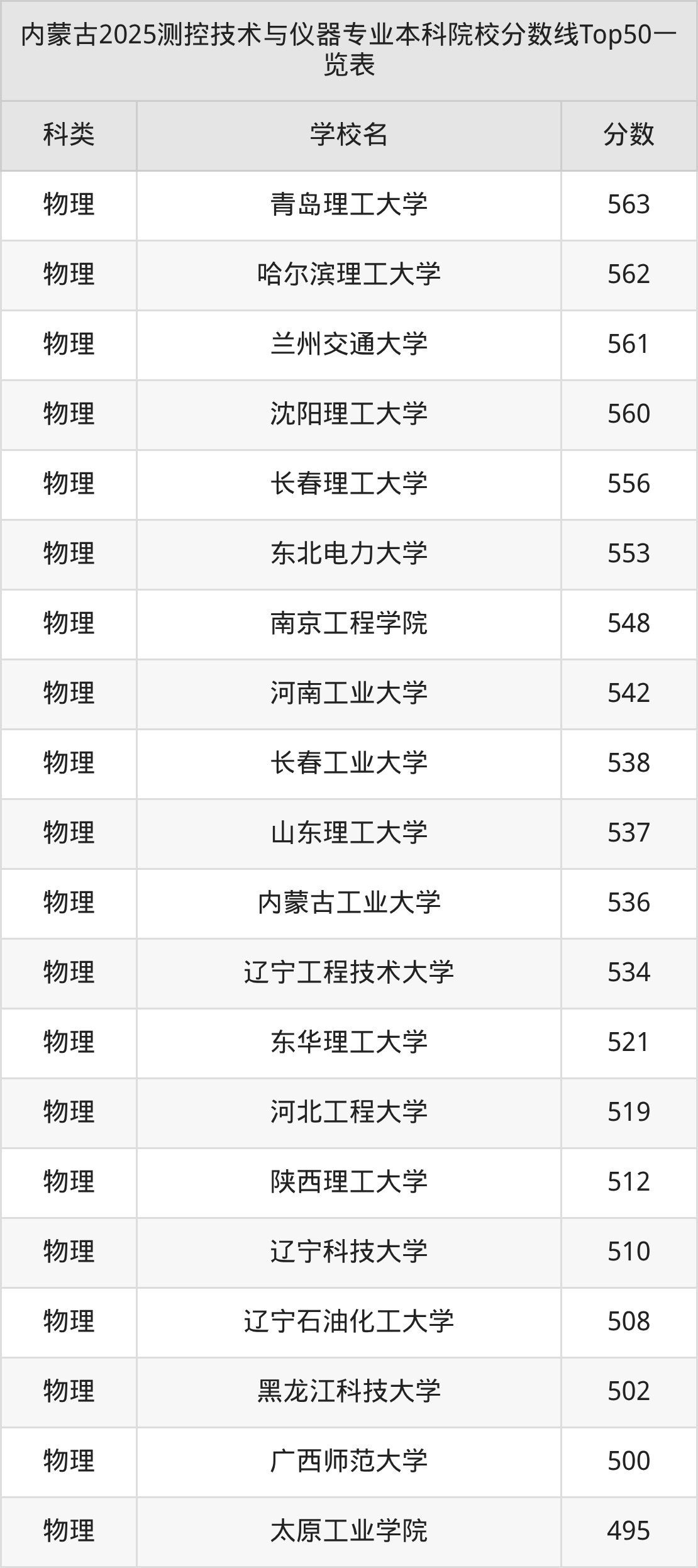 三、测控技术与仪器本科大学2025录取分数线