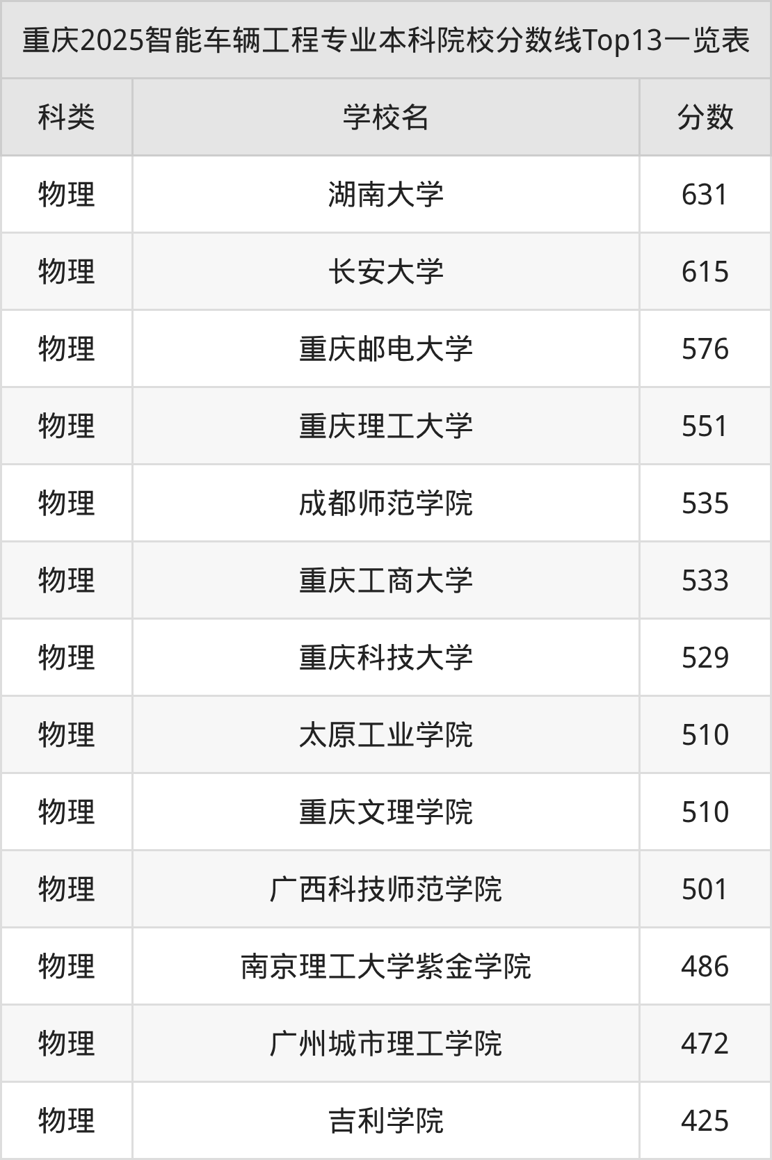 三、智能车辆工程本科大学2025录取分数线