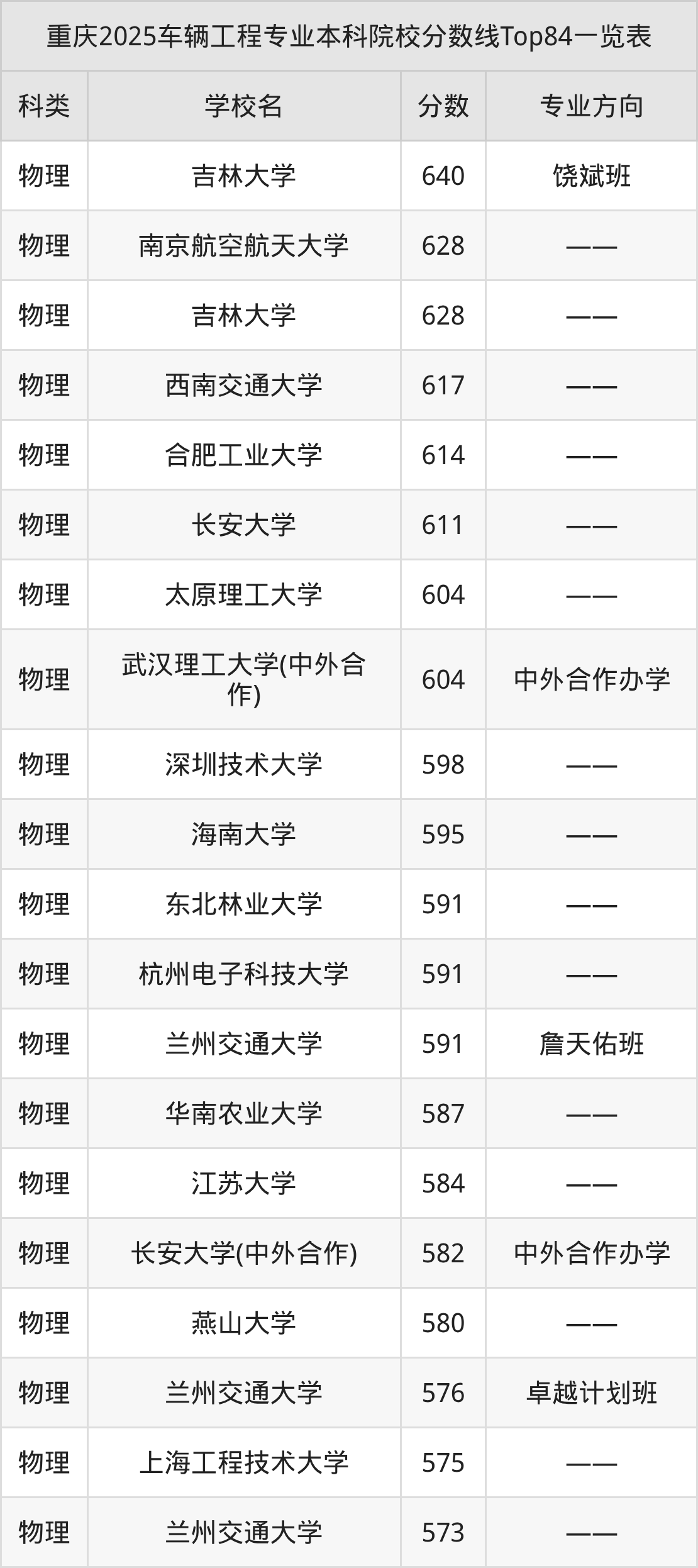 三、车辆工程本科大学2025录取分数线
