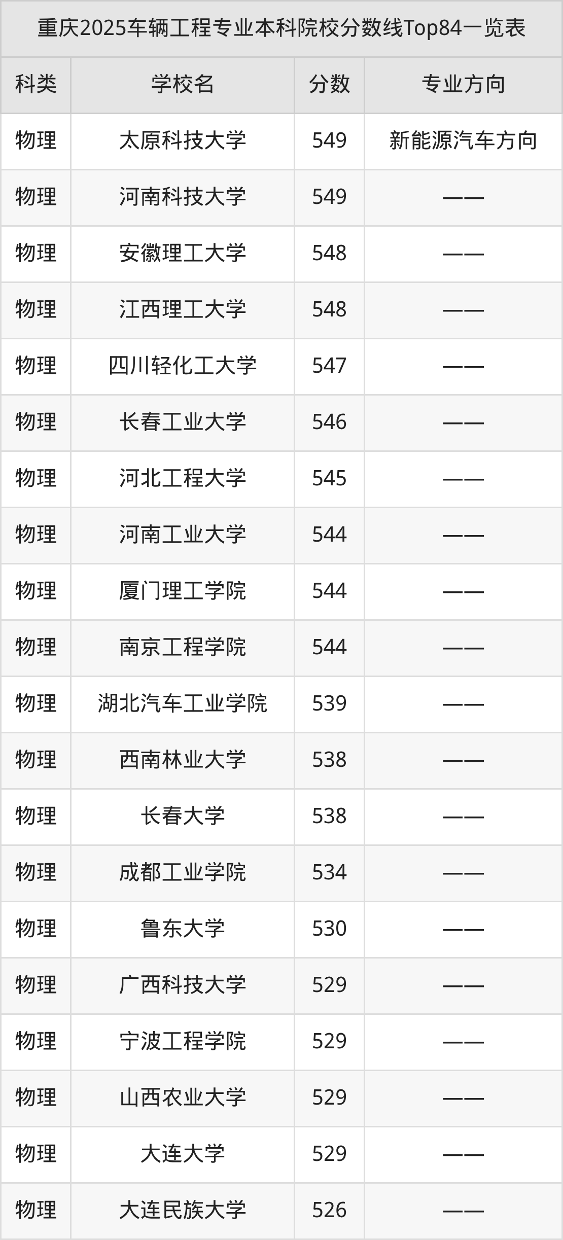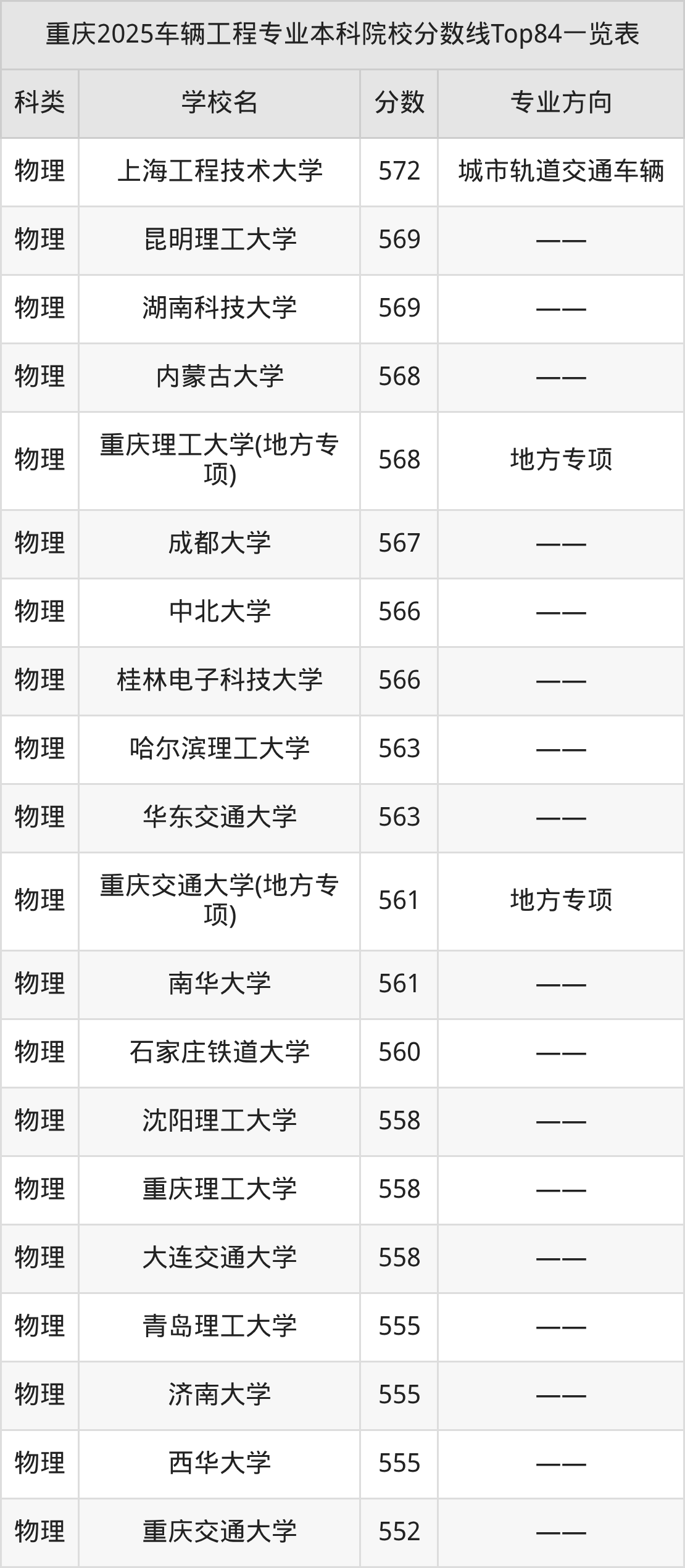 下面是车辆工程专业本科大学排名一览表(138所):