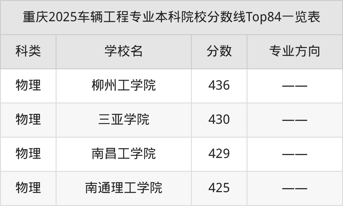 车辆工程专业本科院校实力排名靠前的有清华大学、北京理工大学、同济大学等。2025年本科车辆工程专业招生最低分数为425分(物理类)。
