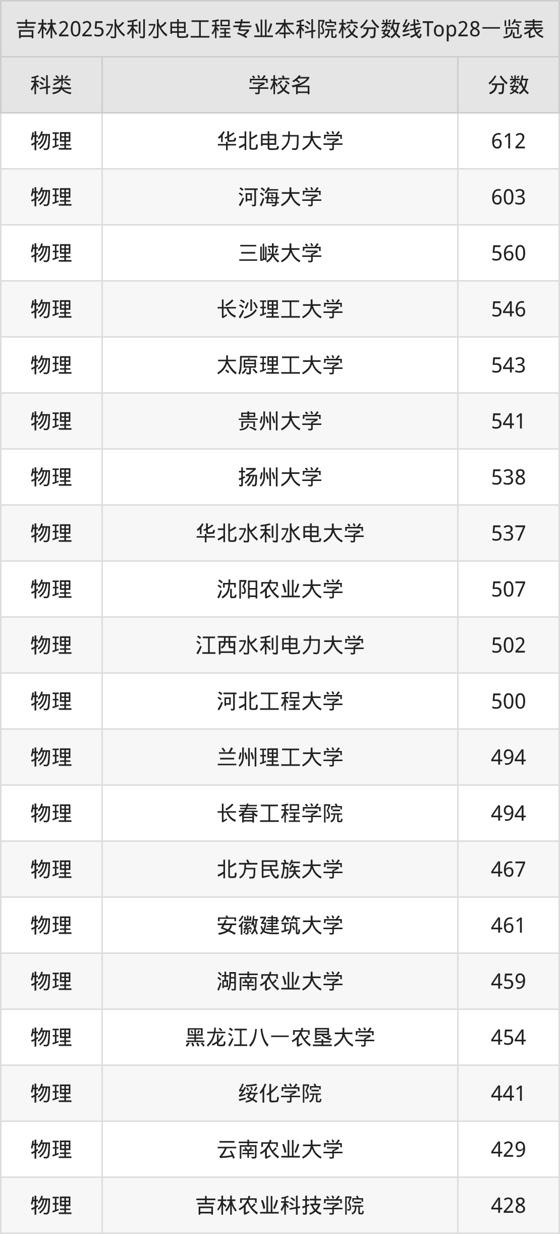 三、水利水电工程本科大学2025录取分数线