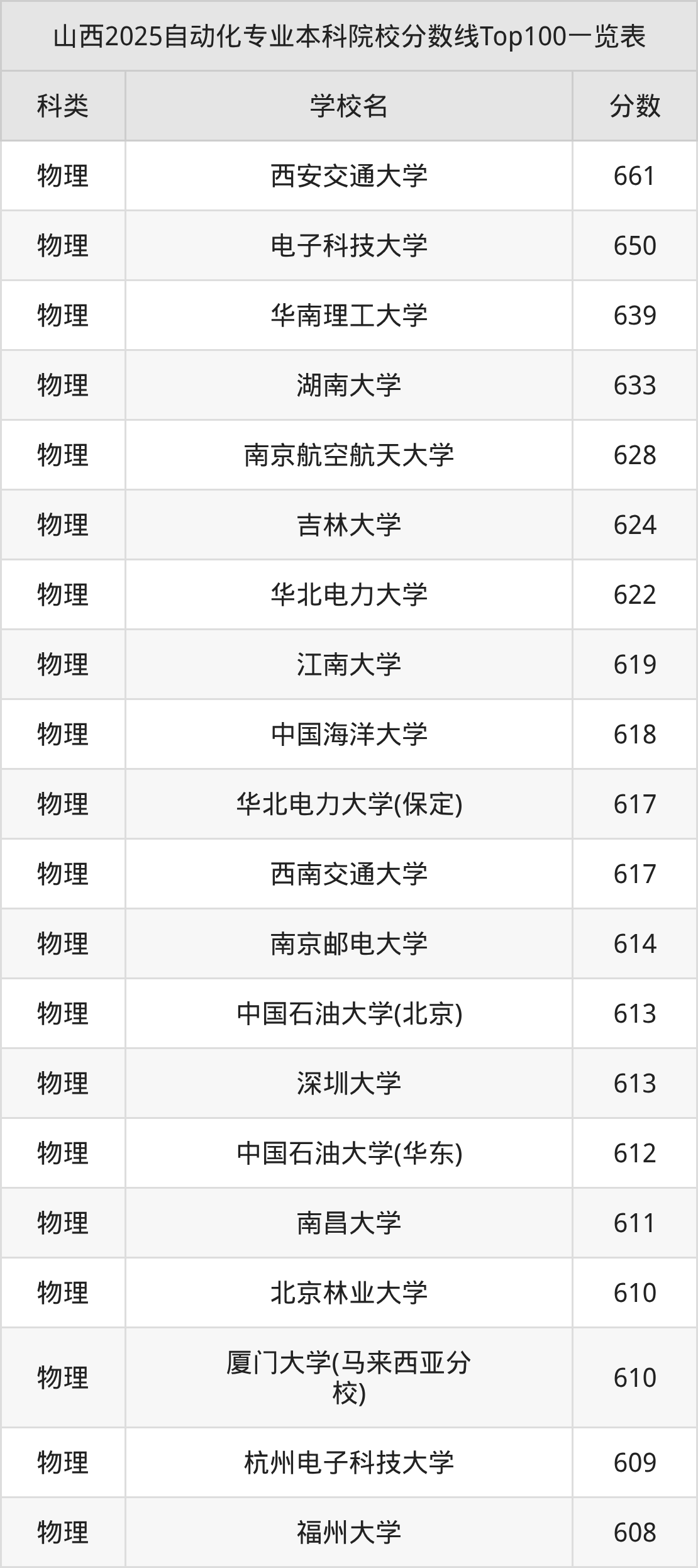 三、自动化本科大学2025录取分数线
