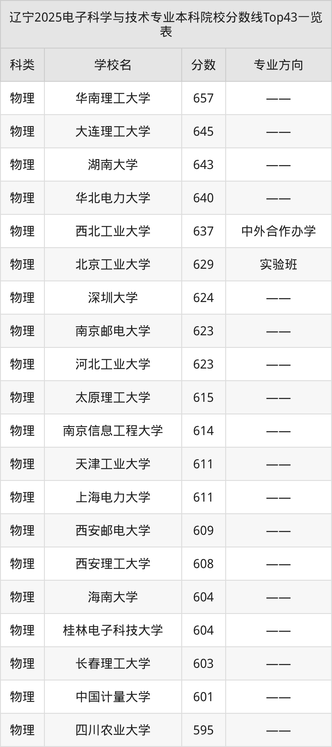 三、电子科学与技术本科大学2025录取分数线