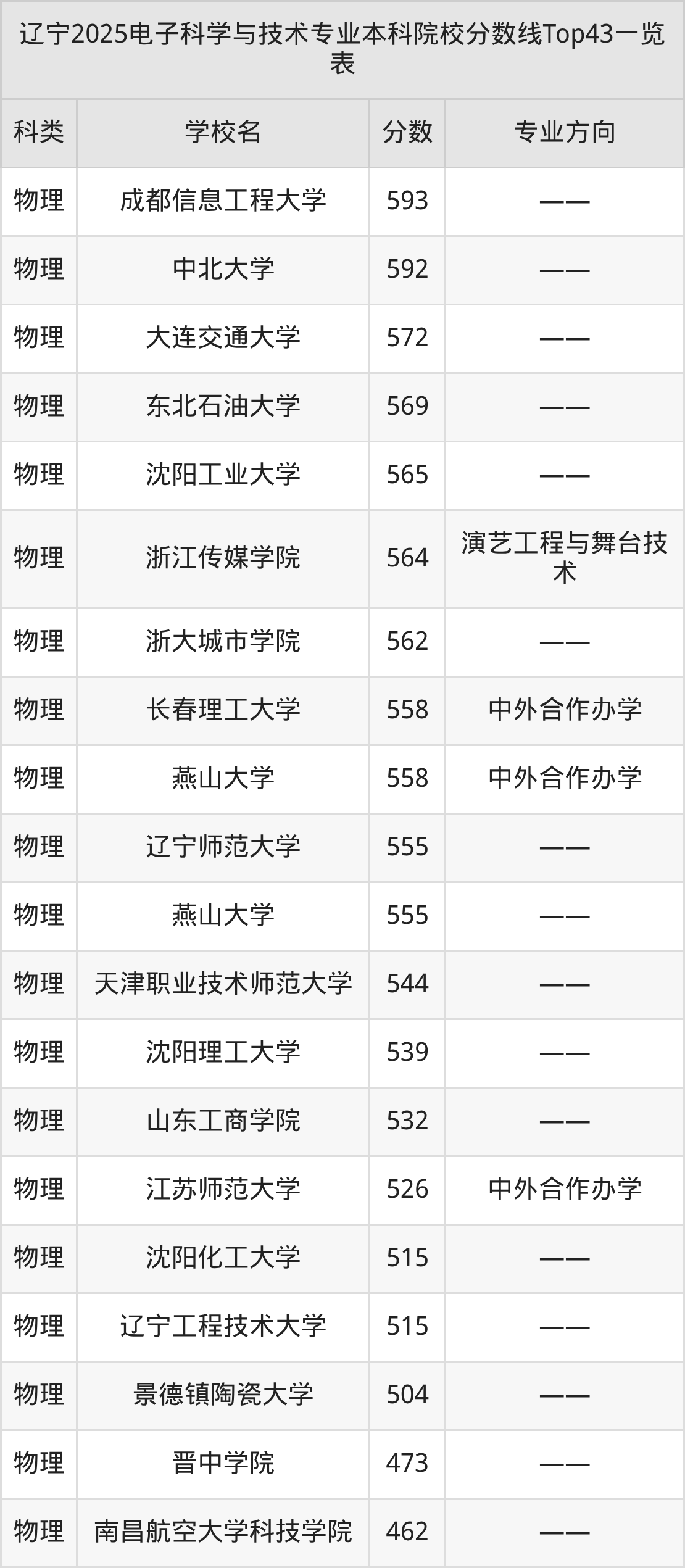 上述院校为有排名的院校,下面根据2025年电子科学与技术专业本科招生计划表,列举全部招生院校名单(不同省份招生院校名单及数量有差异,这里以辽宁高考为例):