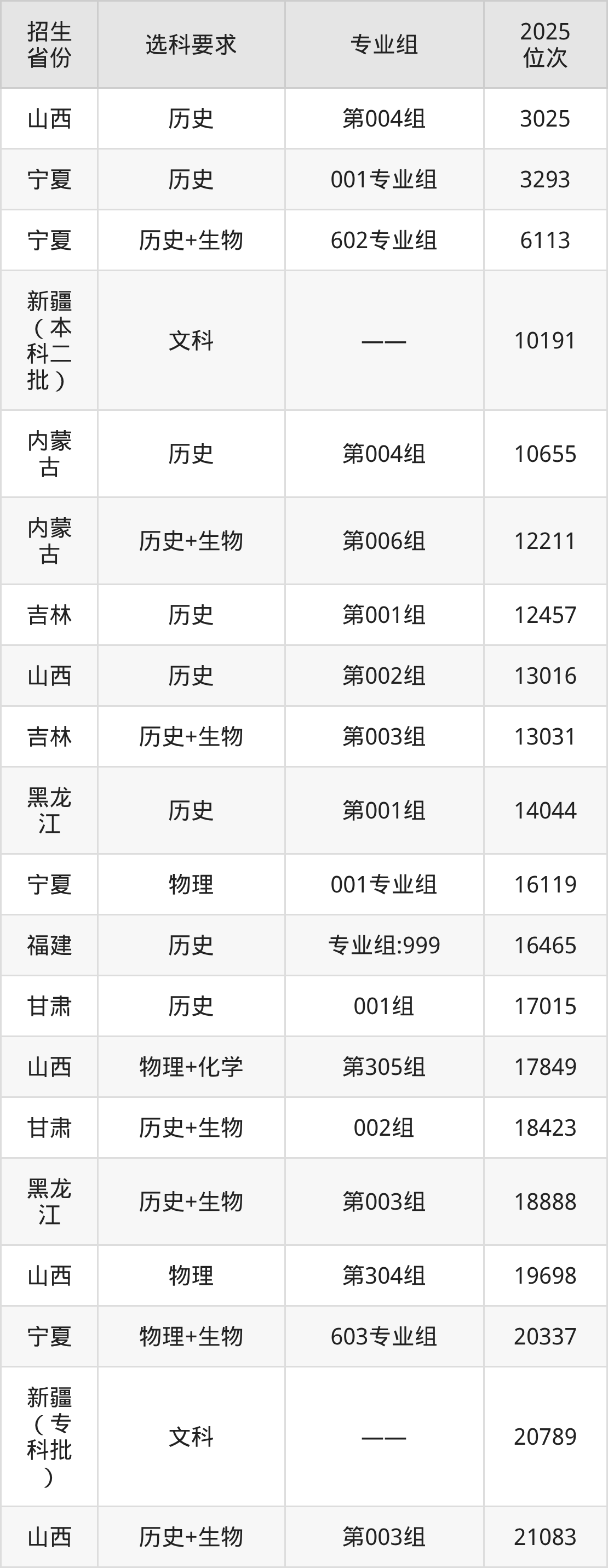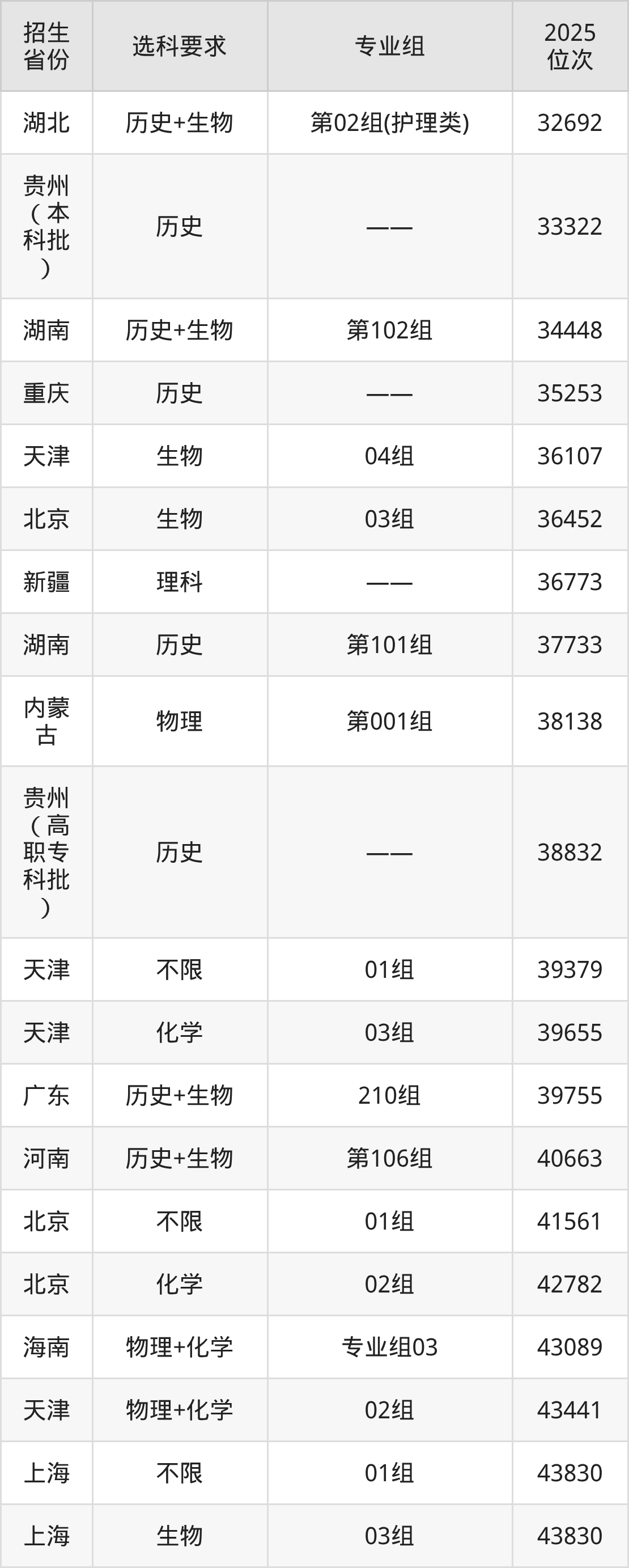 北京中医药大学东方学院2025年在全国各省的位次差异较大,最高位次是3025位(山西历史类)、最低位次是369681位(广东物理类)。各省具体位次请看下图: