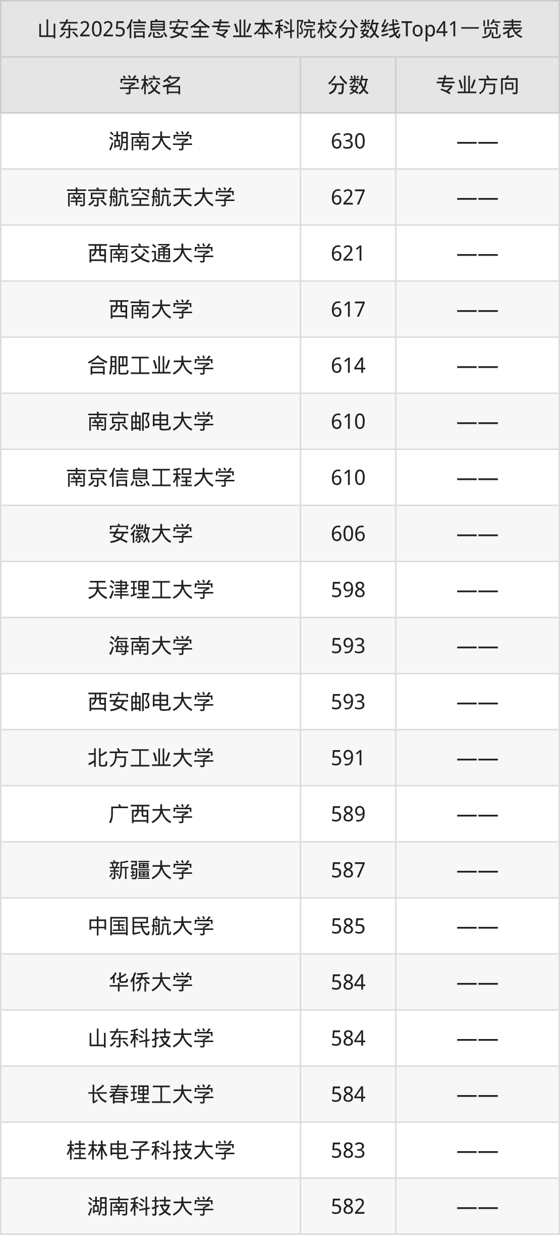 下面是信息安全专业本科大学排名一览表(77所):