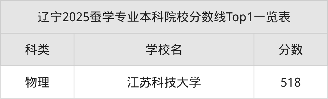 全国本科院校蚕学专业物理类最低收分为518分,对应的招生院校是江苏科技大学。