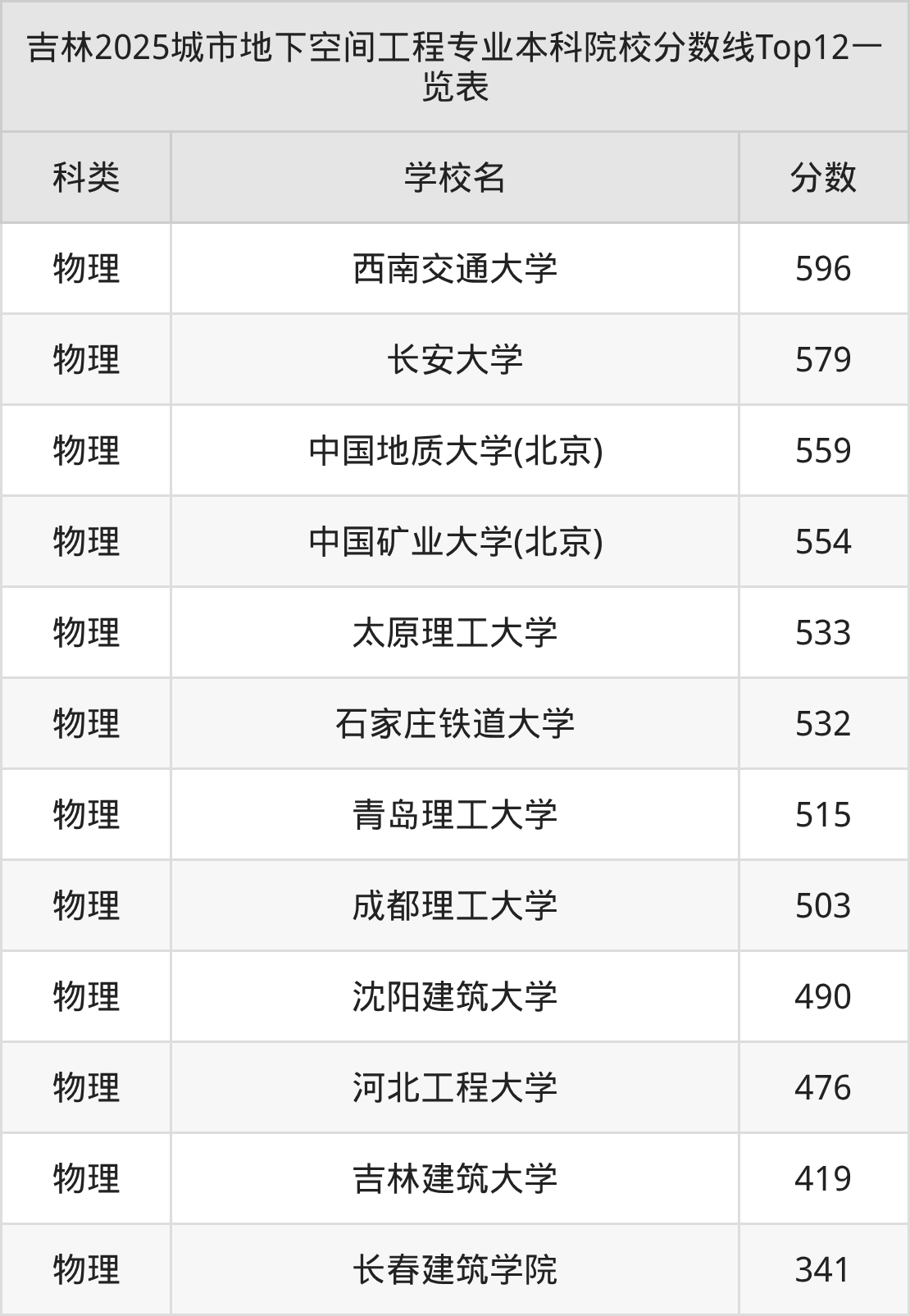 三、城市地下空间工程本科大学2025录取分数线