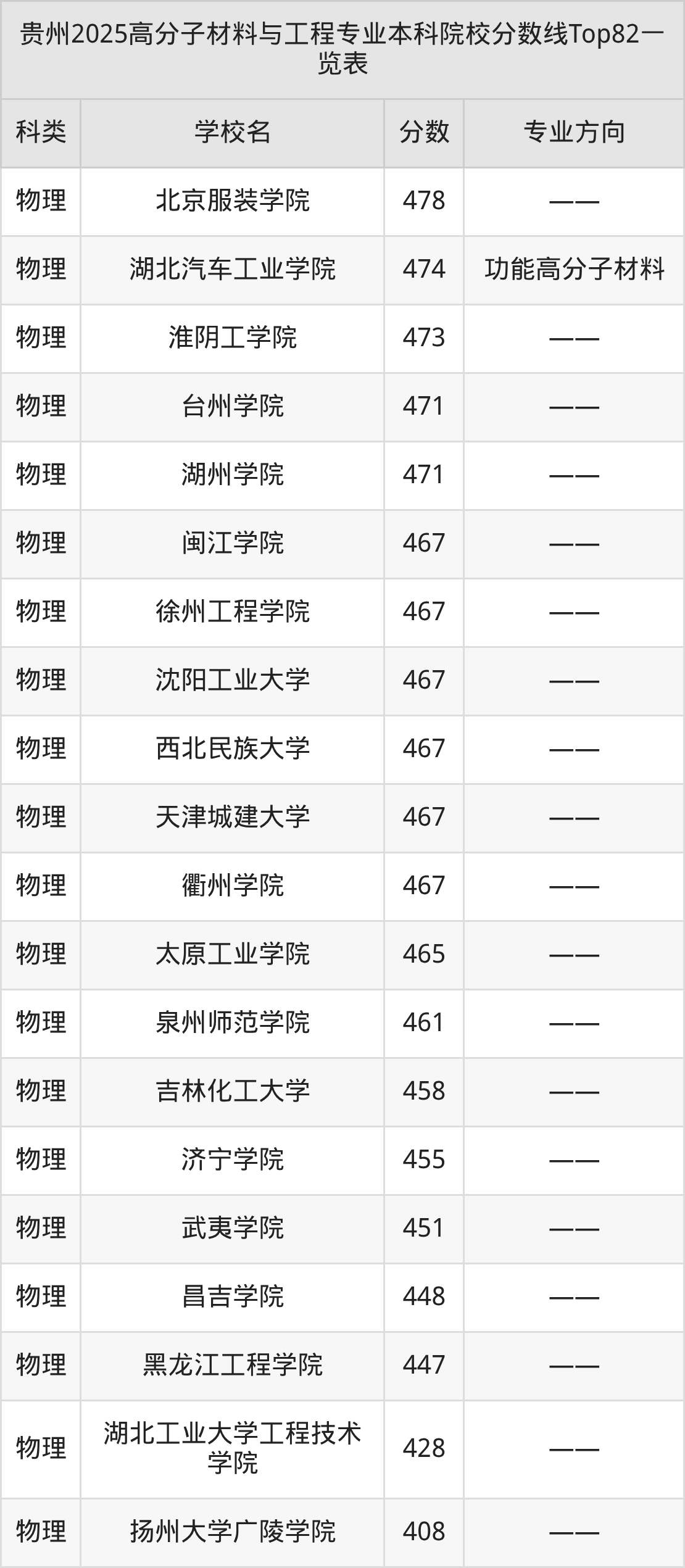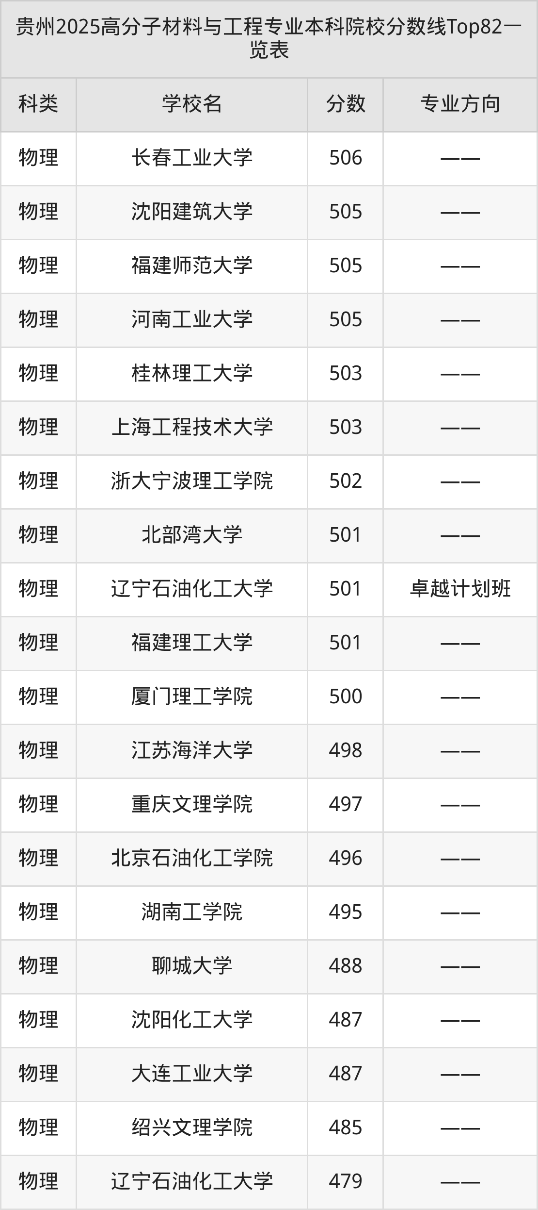 上述院校为有排名的院校,下面根据2025年高分子材料与工程专业本科招生计划表,列举全部招生院校名单(不同省份招生院校名单及数量有差异,这里以宁夏高考为例):