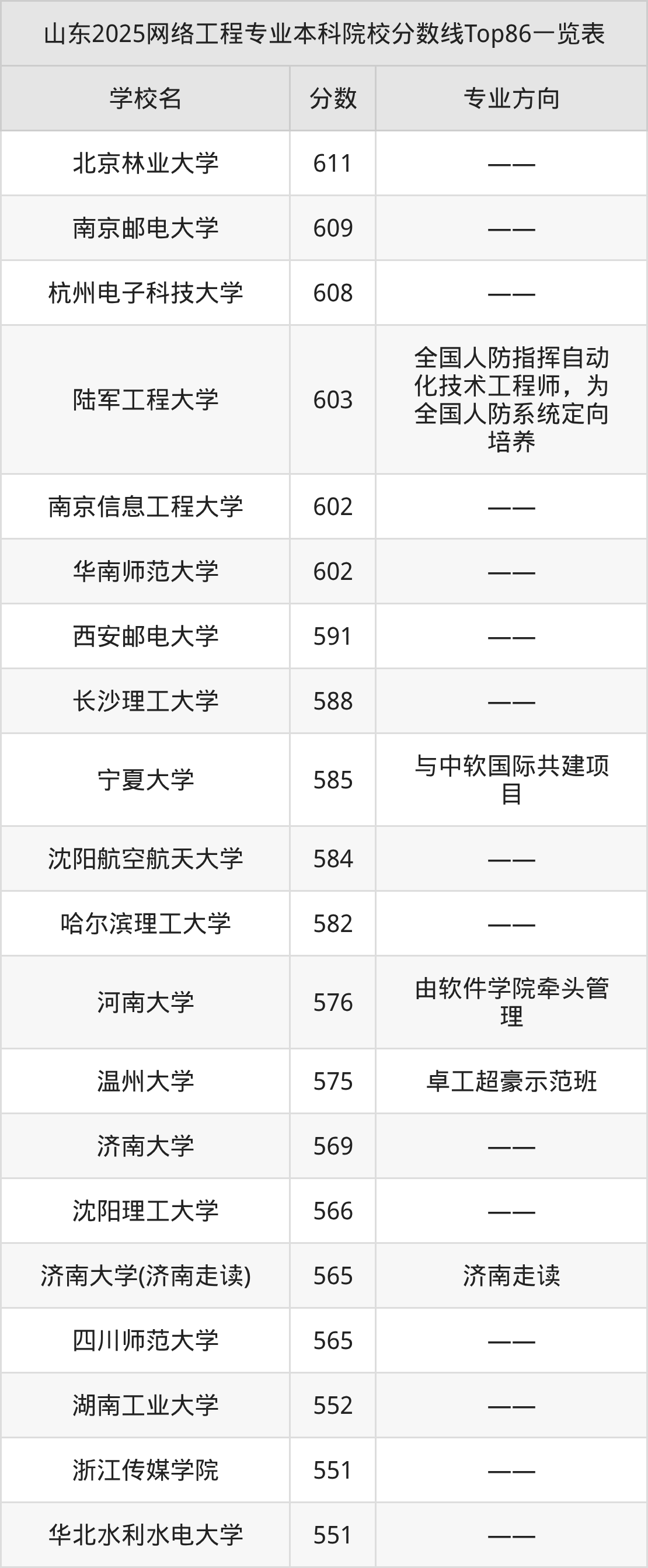 下面是网络工程专业本科大学排名一览表(183所):