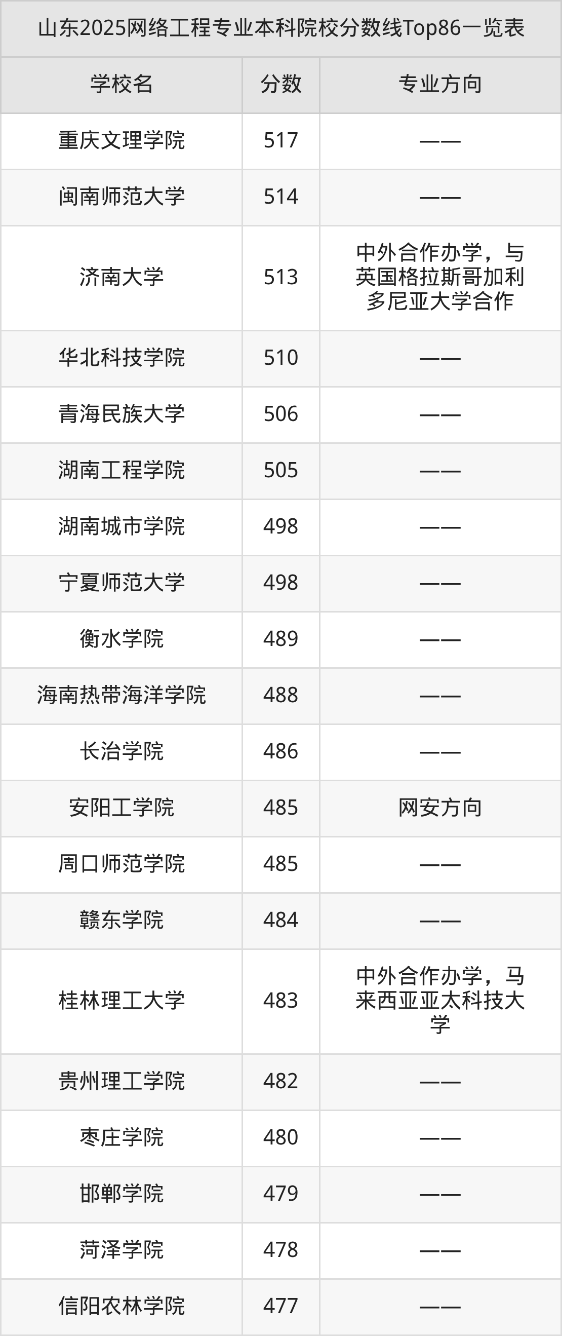 三、网络工程本科大学2025录取分数线