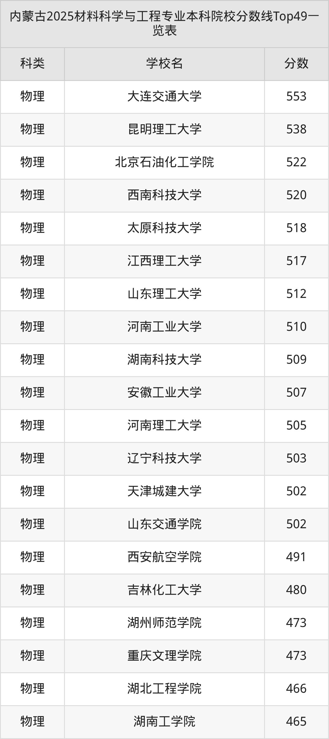 上述院校为有排名的院校,下面根据2025年材料科学与工程专业本科招生计划表,列举全部招生院校名单(不同省份招生院校名单及数量有差异,这里以浙江高考为例):