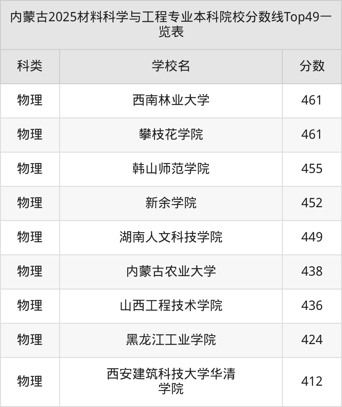 材料科学与工程专业本科院校实力排名靠前的有上海交通大学、哈尔滨工业大学、清华大学等。2025年本科材料科学与工程专业招生最低分数为412分(物理类)。