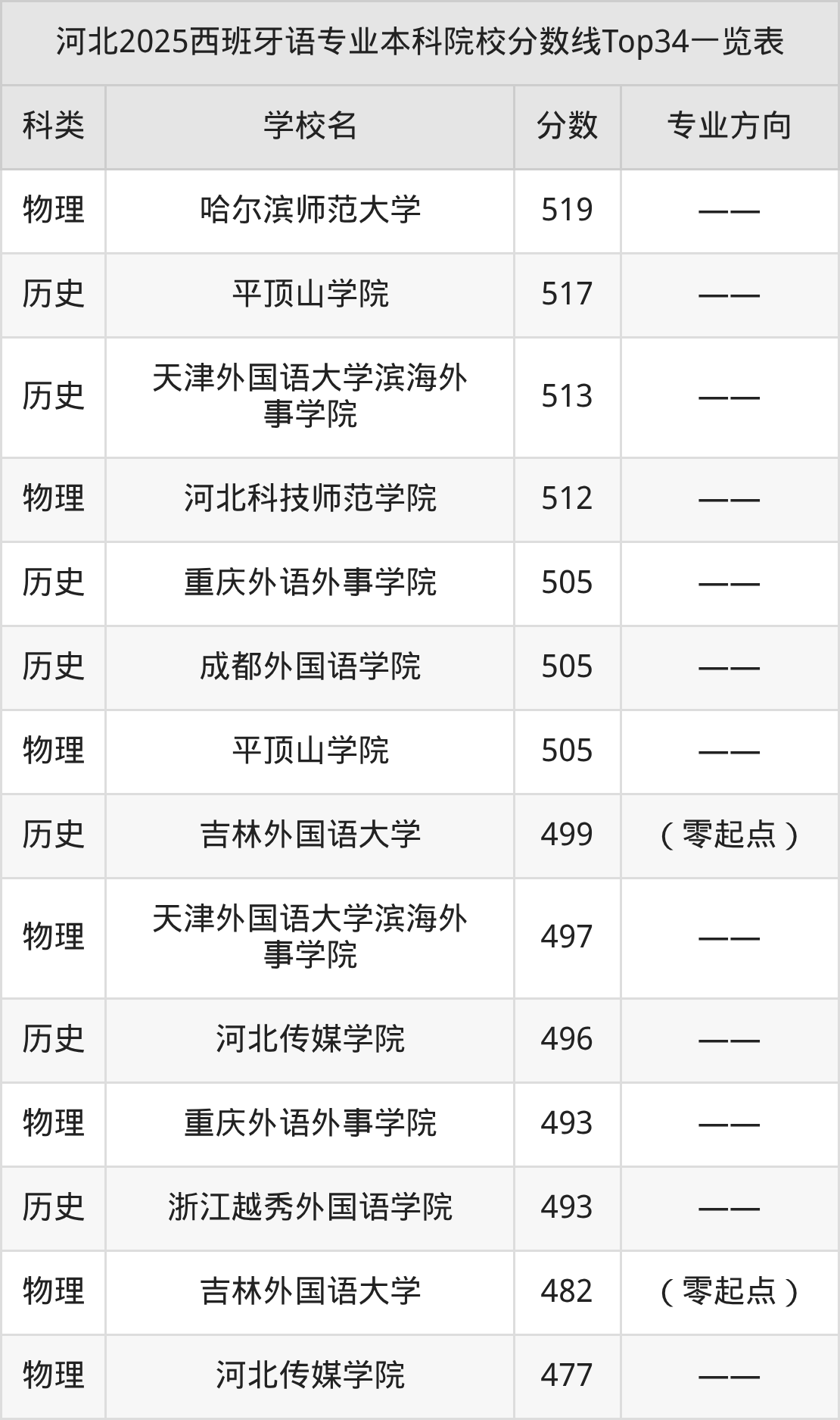 西班牙语专业本科院校实力排名靠前的有北京大学、上海外国语大学、浙江大学等。2025年本科西班牙语专业招生最低分数为477分(物理类),而想报考该专业的历史类考生分数至少要在493分以上。