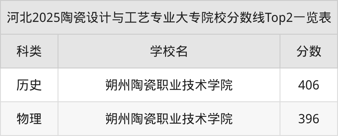 物理类最低收分为396分,对应的招生院校是朔州陶瓷职业技术学院。结合上述分析,物理类考生比历史类考生更容易上陶瓷设计与工艺大专院校。