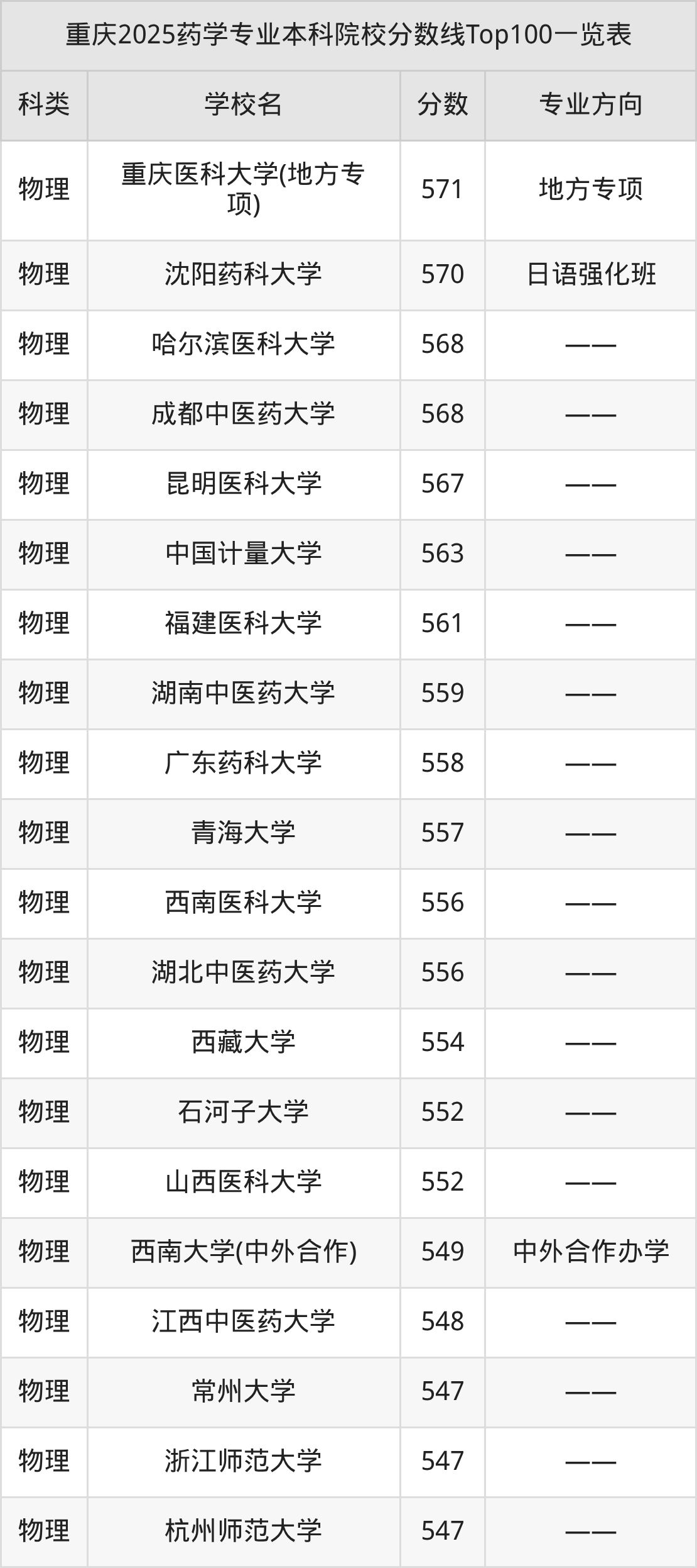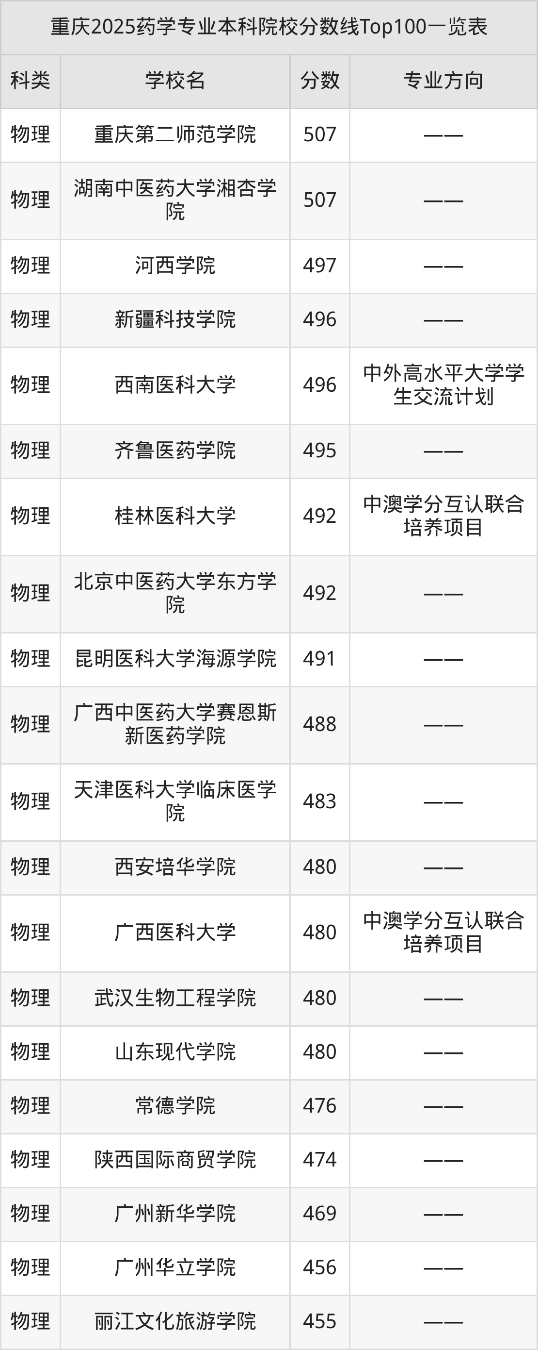 上述院校为有排名的院校,下面根据2025年药学专业本科招生计划表,列举全部招生院校名单(不同省份招生院校名单及数量有差异,这里以青海高考为例):