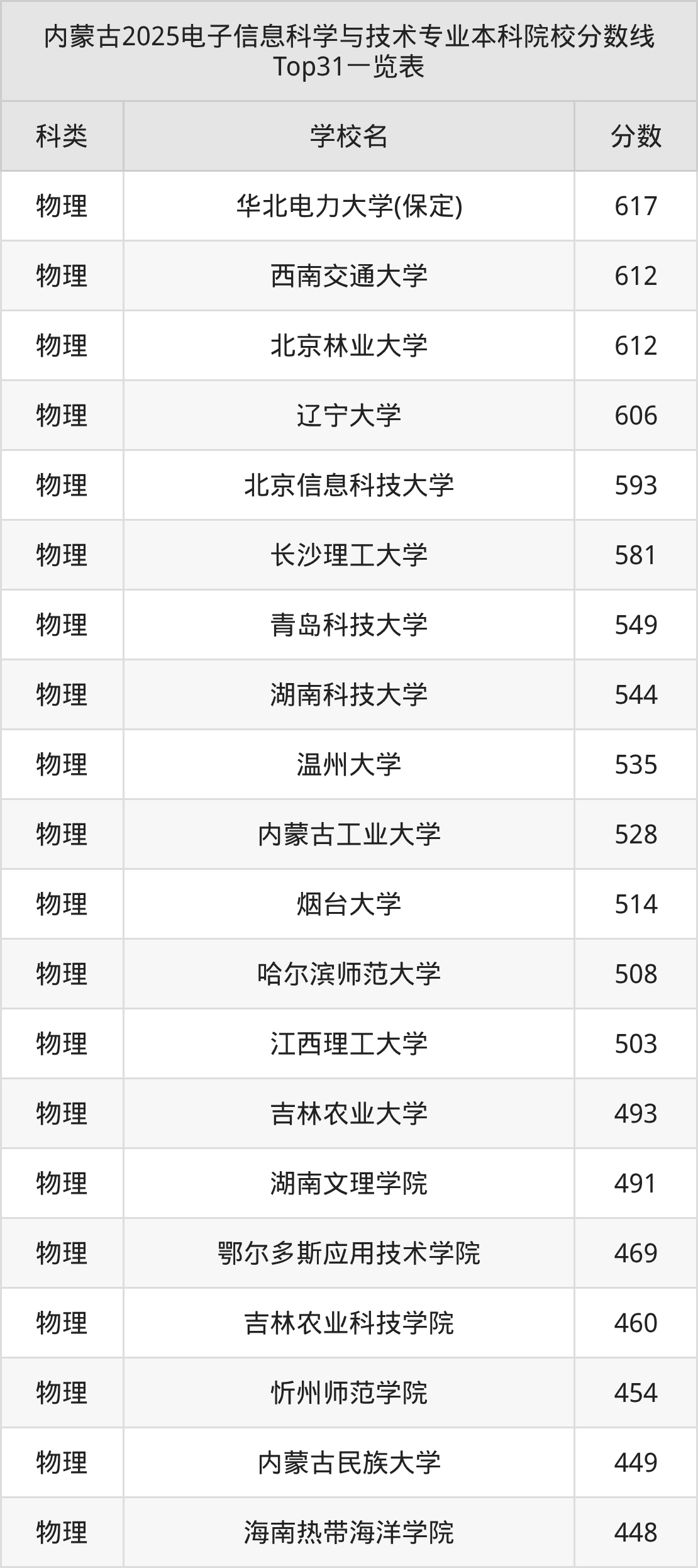 上述院校为有排名的院校,下面根据2025年电子信息科学与技术专业本科招生计划表,列举全部招生院校名单(不同省份招生院校名单及数量有差异,这里以北京高考为例):