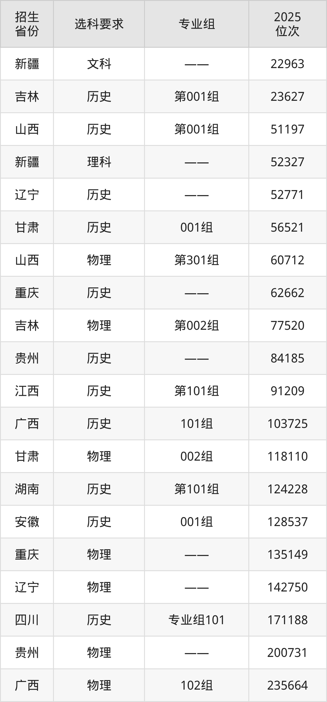 抚顺师范高等专科学校2025年在全国各省的位次差异较大,最高位次是22963位(新疆文科)、最低位次是297316位(安徽物理类)。各省具体位次请看下图: