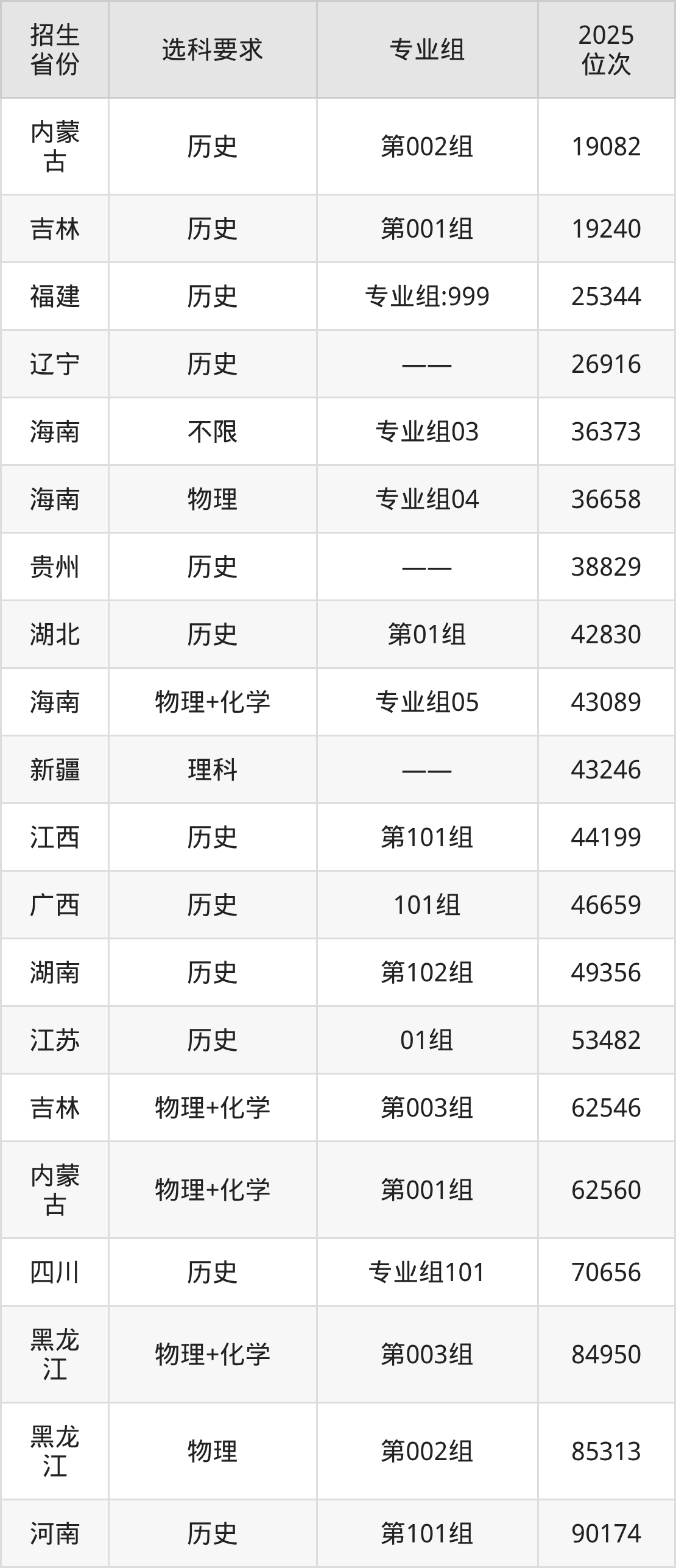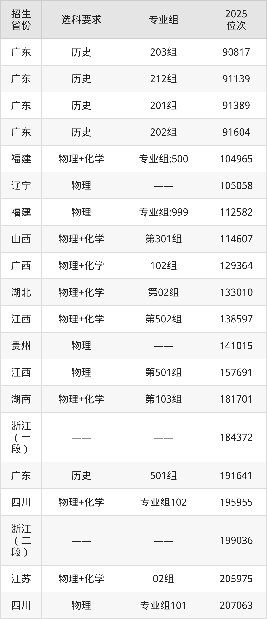 广东理工学院2025年在全国各省的位次差异较大,最高位次是19082位(内蒙古历史类)、最低位次是389312位(广东物理类)。各省具体位次请看下图: