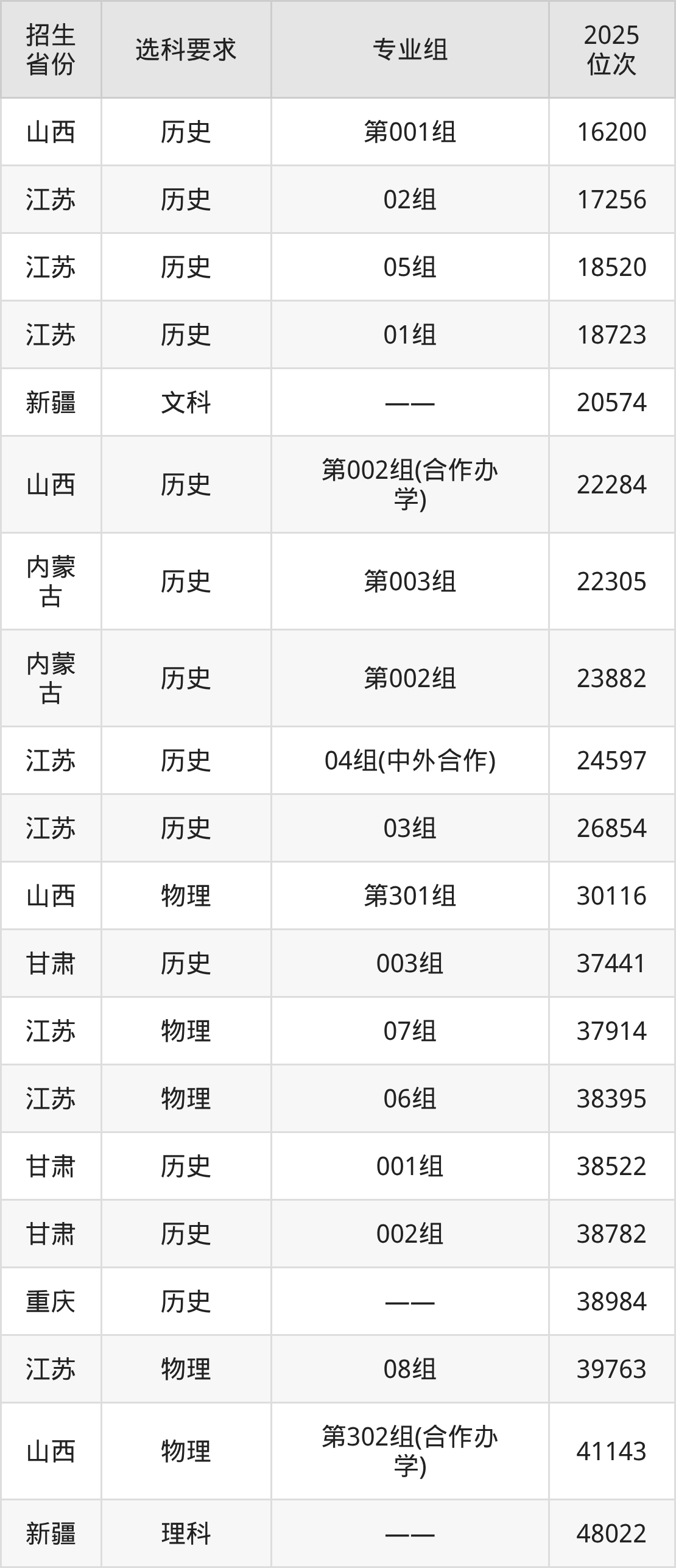 上海旅游高等专科学校2025年在全国各省的位次差异较大,最高位次是16200位(山西历史类)、最低位次是503941位(山东)。各省具体位次请看下图: