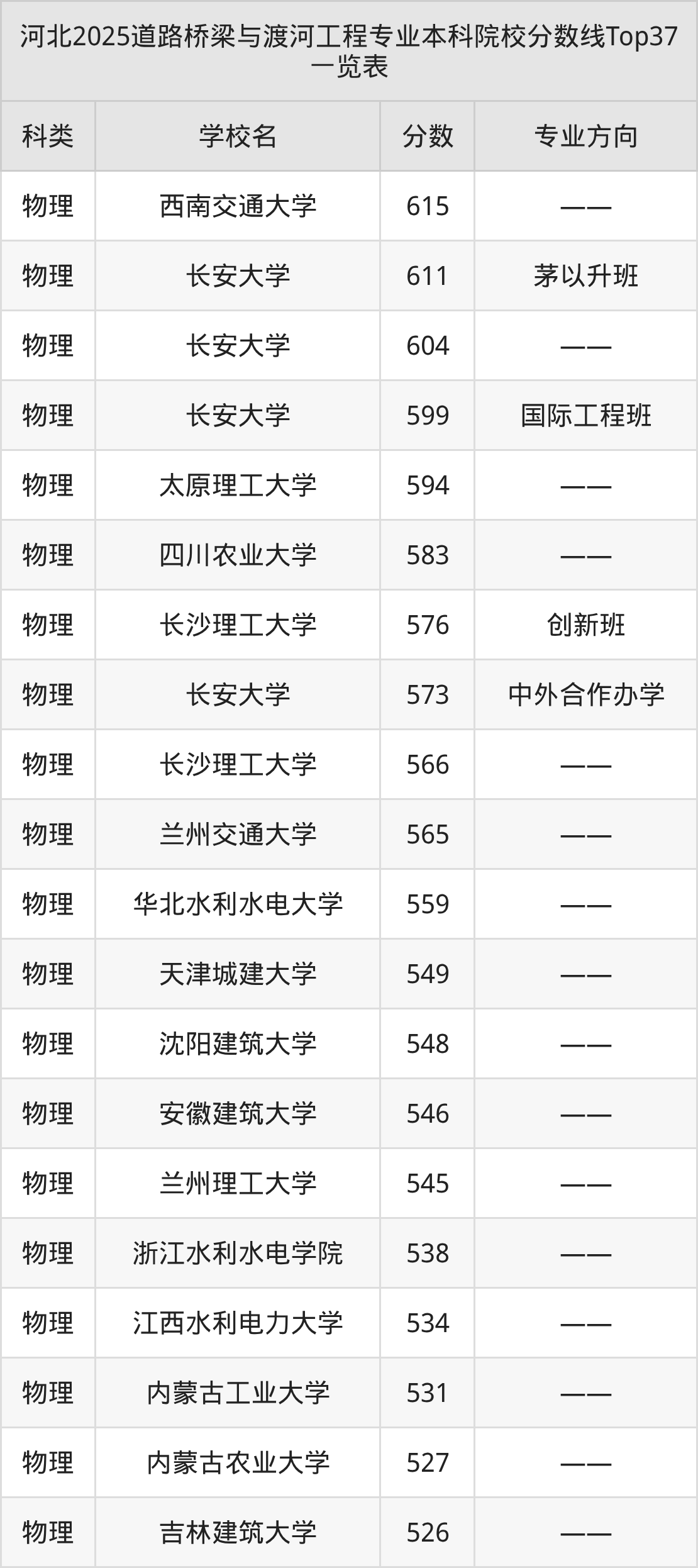三、道路桥梁与渡河工程本科大学2025录取分数线