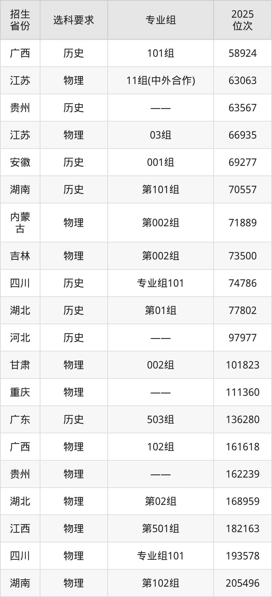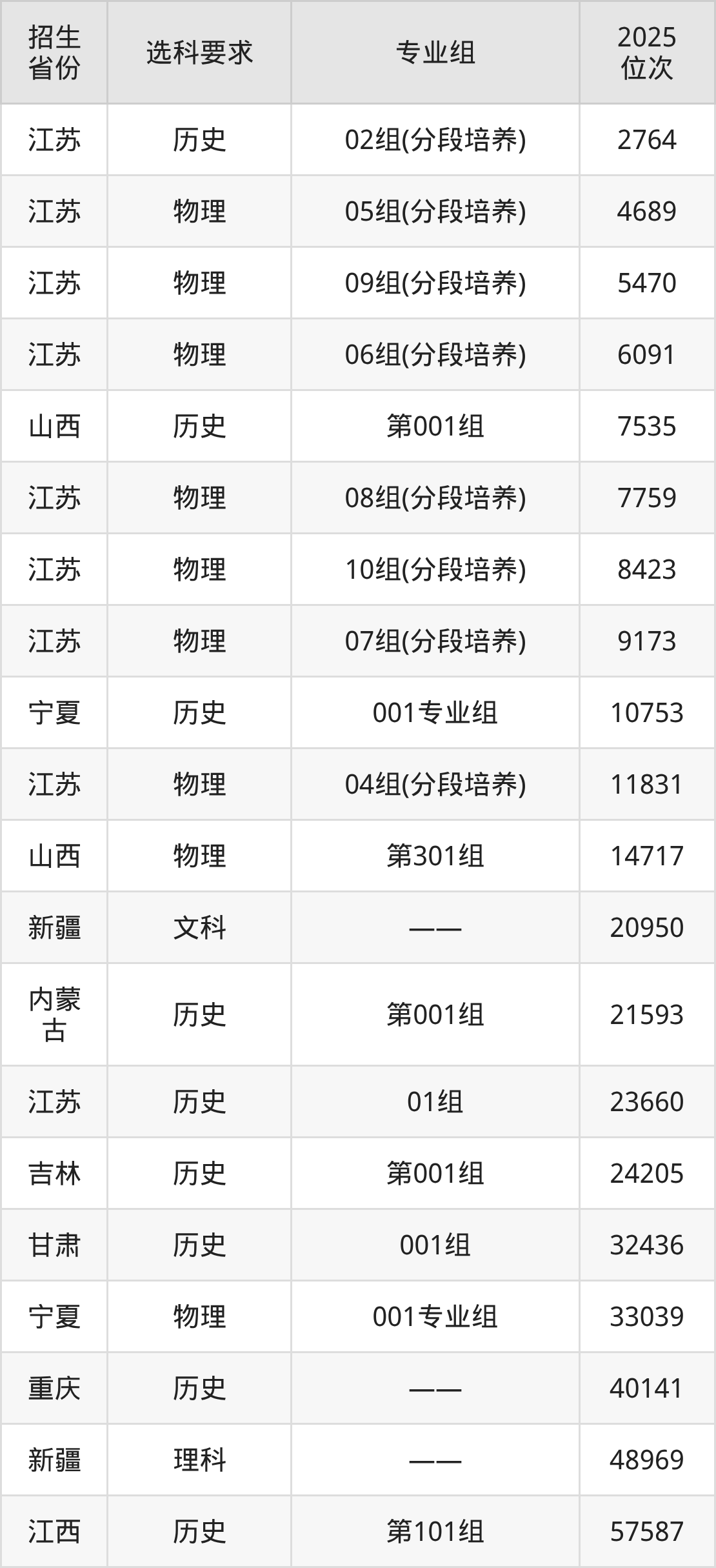 徐州工业职业技术学院2025年在全国各省的位次差异较大,最高位次是2764位(江苏历史类)、最低位次是378797位(山东)。各省具体位次请看下图: