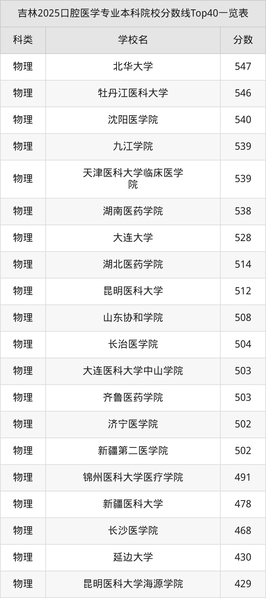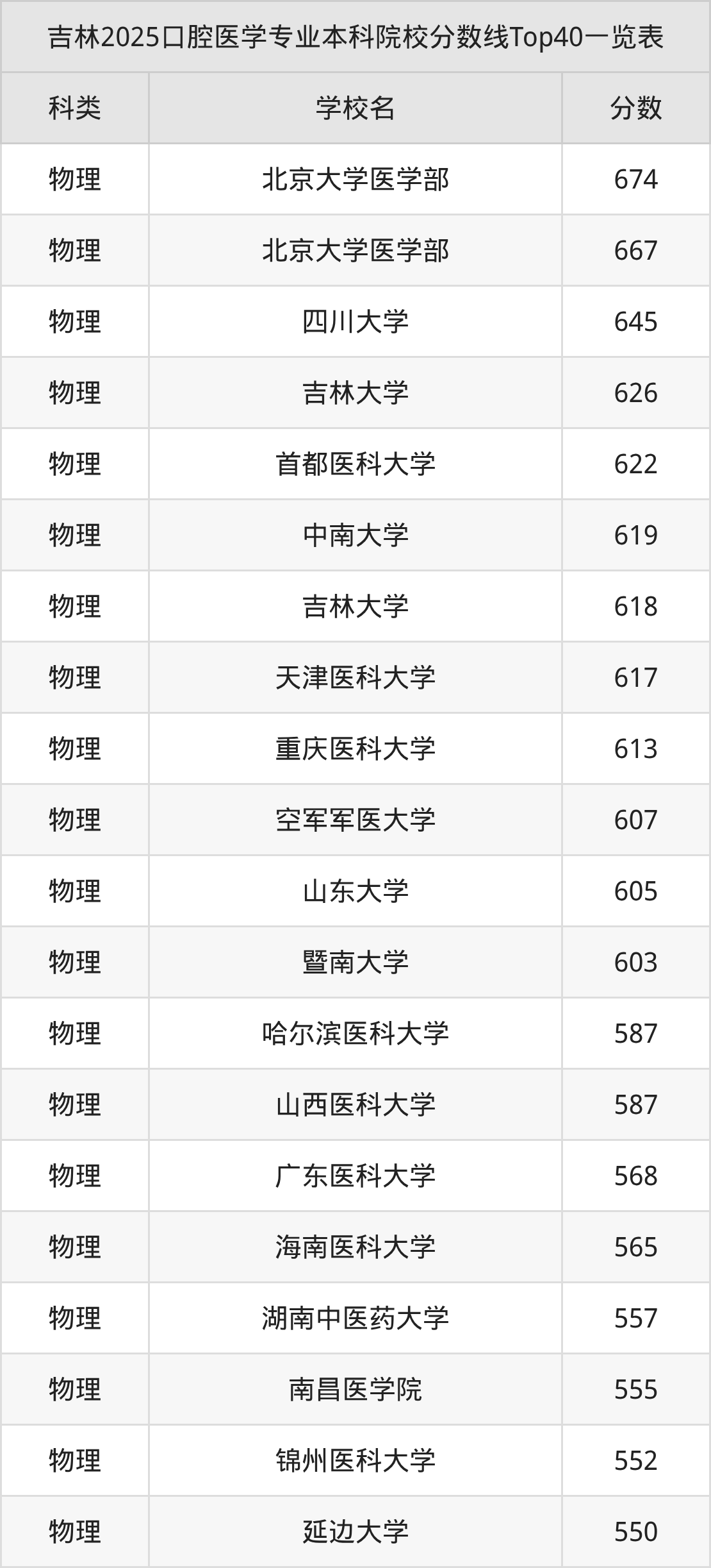 三、口腔医学本科大学2025录取分数线