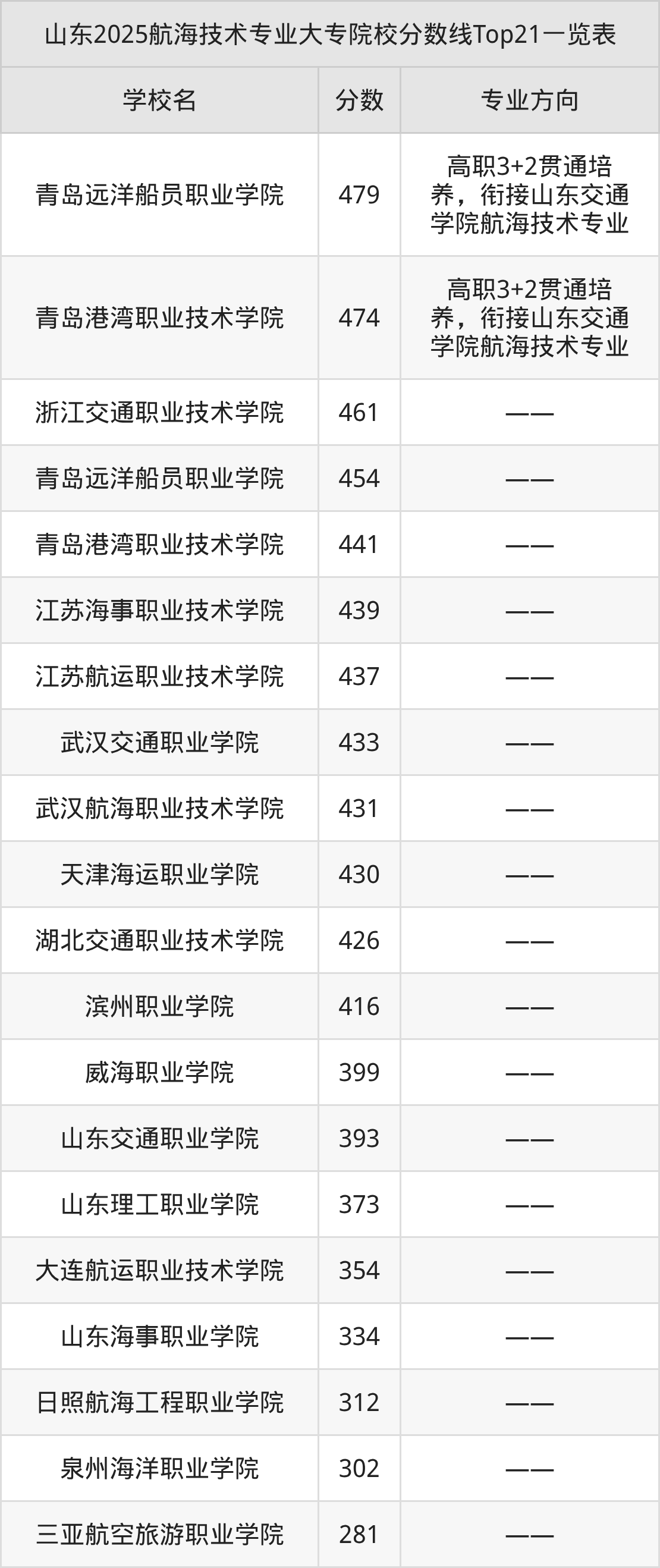 下面是航海技术专业大专排名一览表(22所):