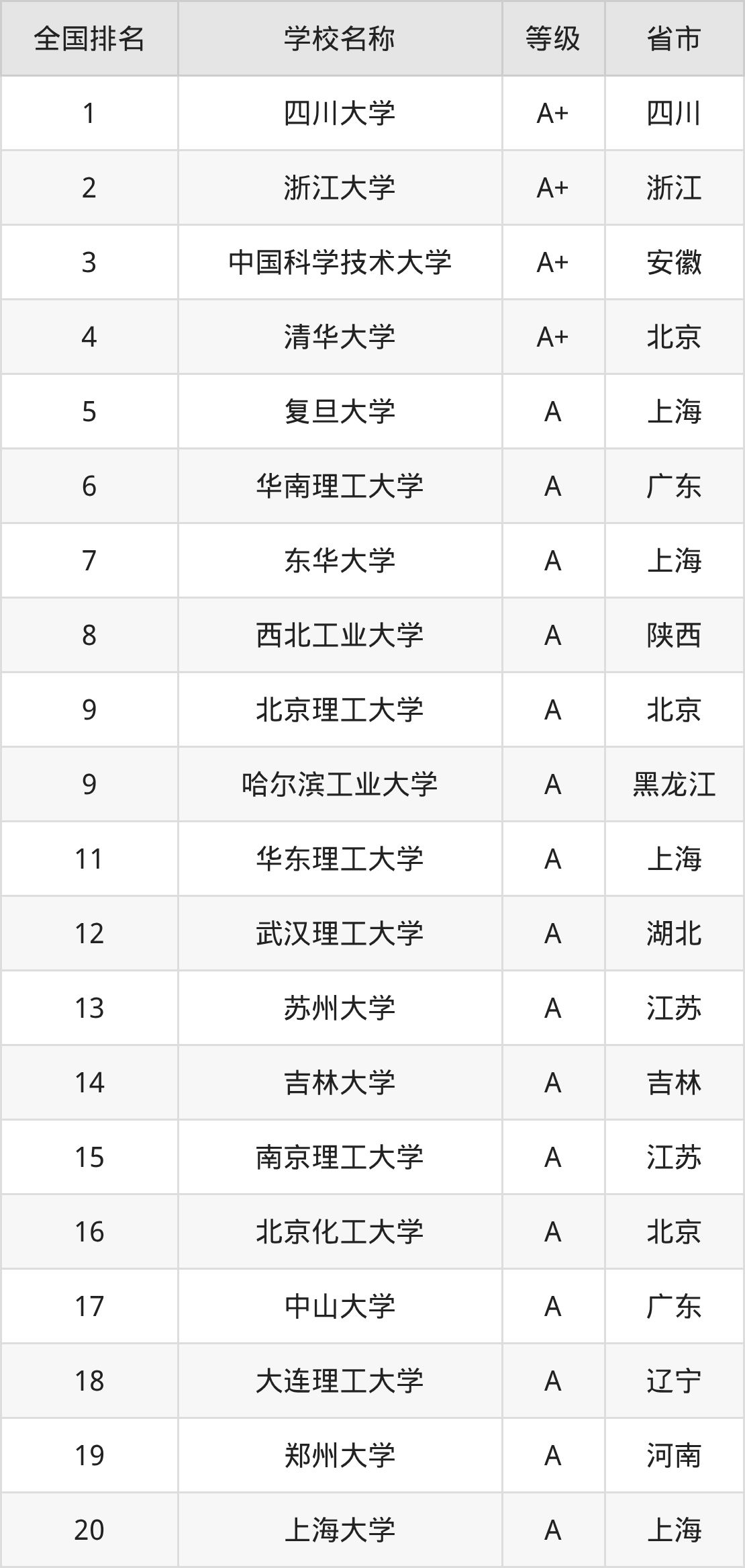 1、四川大学(A+级)
