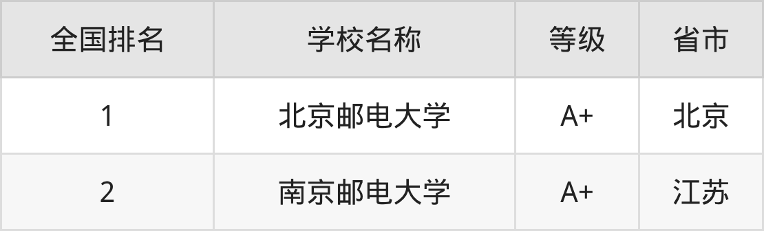 下面是邮政工程专业全国排名前2的大学名单及实力评级: