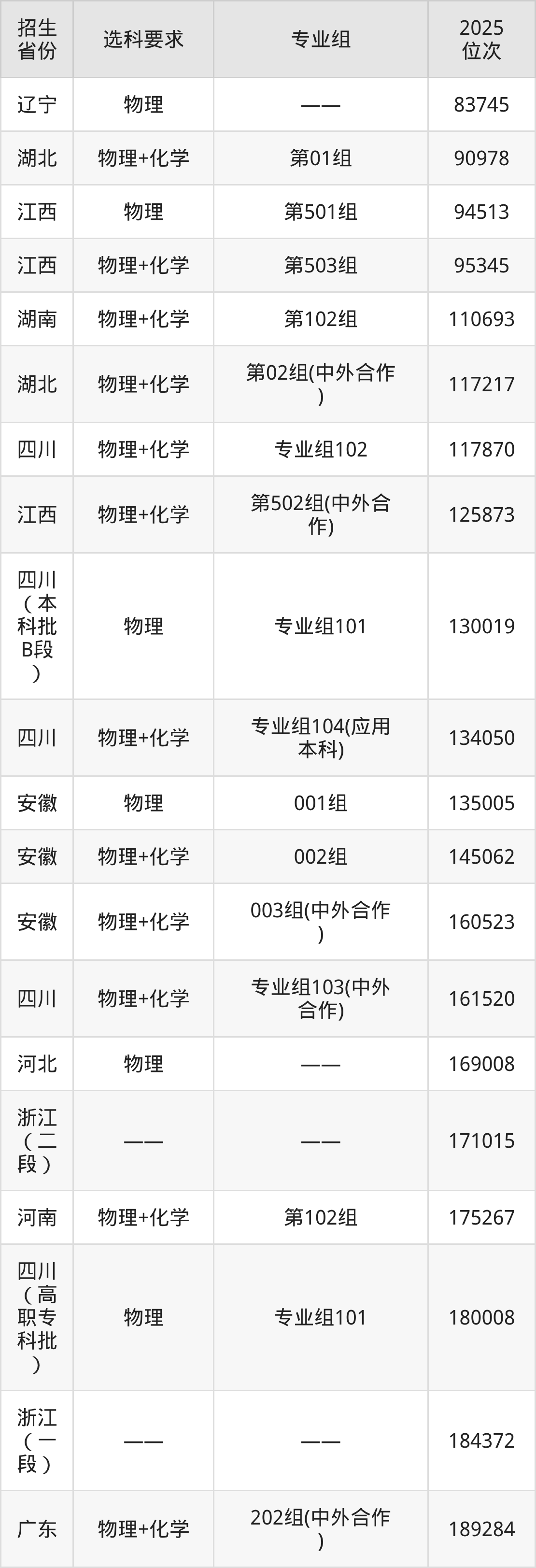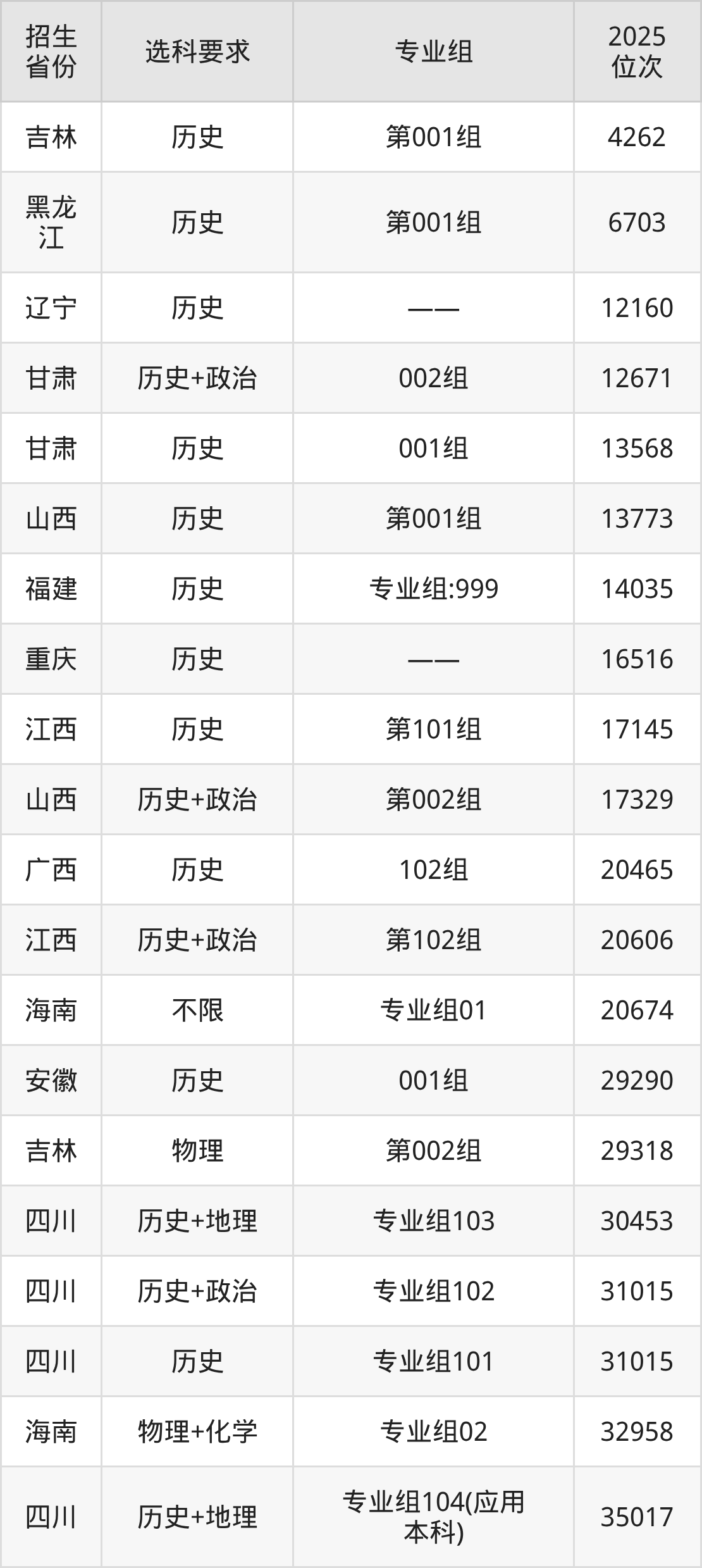 四川旅游学院2025年在全国各省的位次差异较大,最高位次是4262位(吉林历史类)、最低位次是289487位(河南物理类)。各省具体位次请看下图: