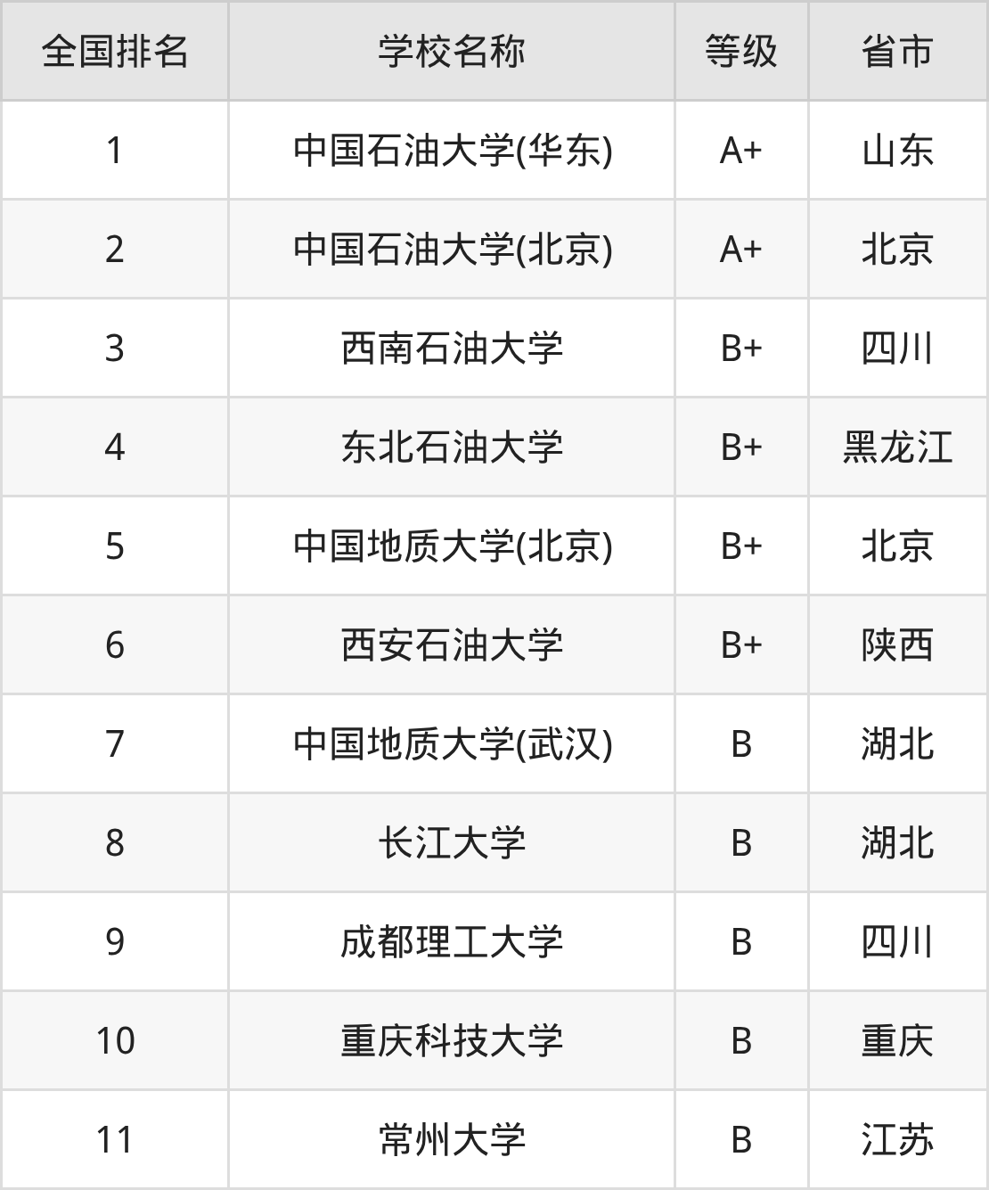 下面是石油工程专业全国排名前10的大学名单及实力评级: