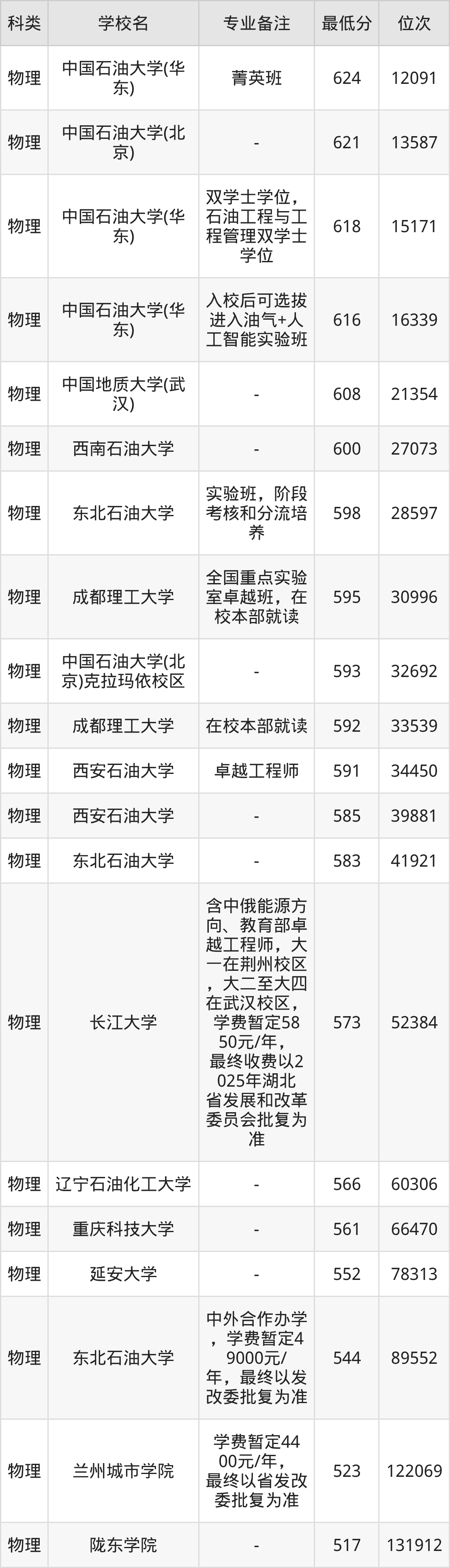 下面是2025年石油工程录取分数线Top22一览表: