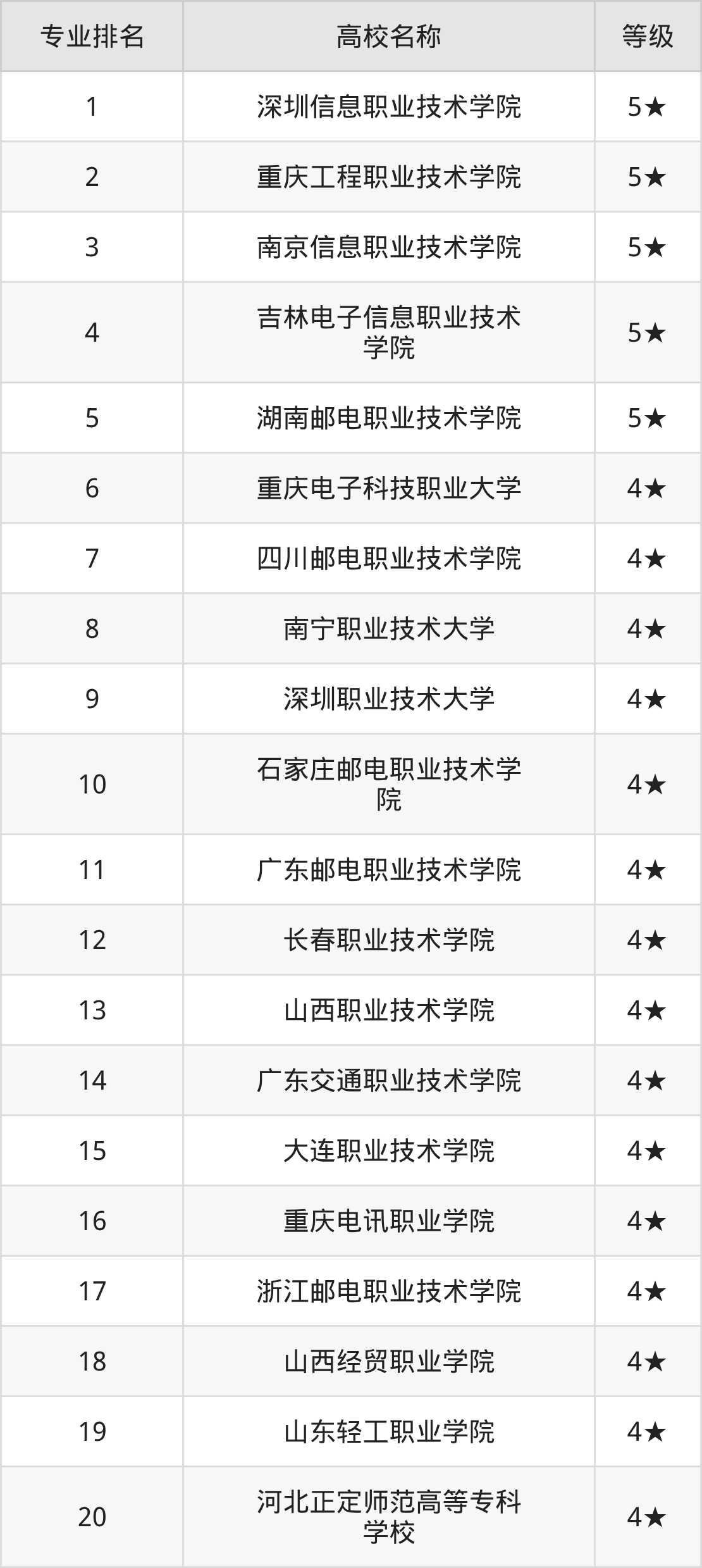 而根据最新一年排行榜显示,现代移动通信技术专业专科排名最靠前、实力最强的大学是深圳信息职业技术学院。下面就对现代移动通信技术的就业情况以及大学最新排名、2025专业分数进行分析,以供2026届考生参考。