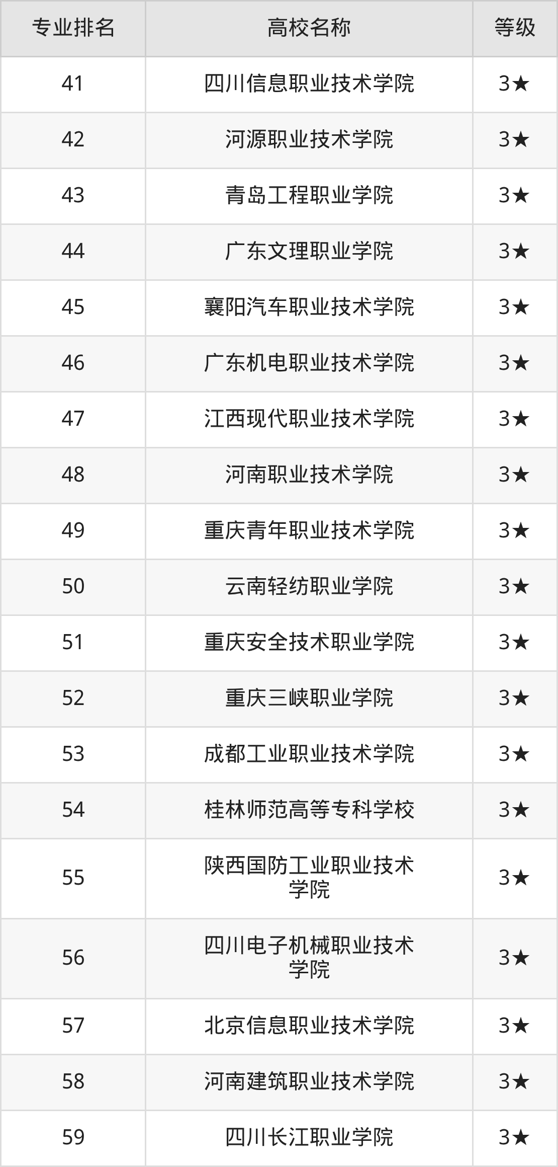 全国现代移动通信技术开设院校参与排名的共有59所,实力最强的是深圳信息职业技术学院(全国排名第1名),其专业实力等级被评为5★级。