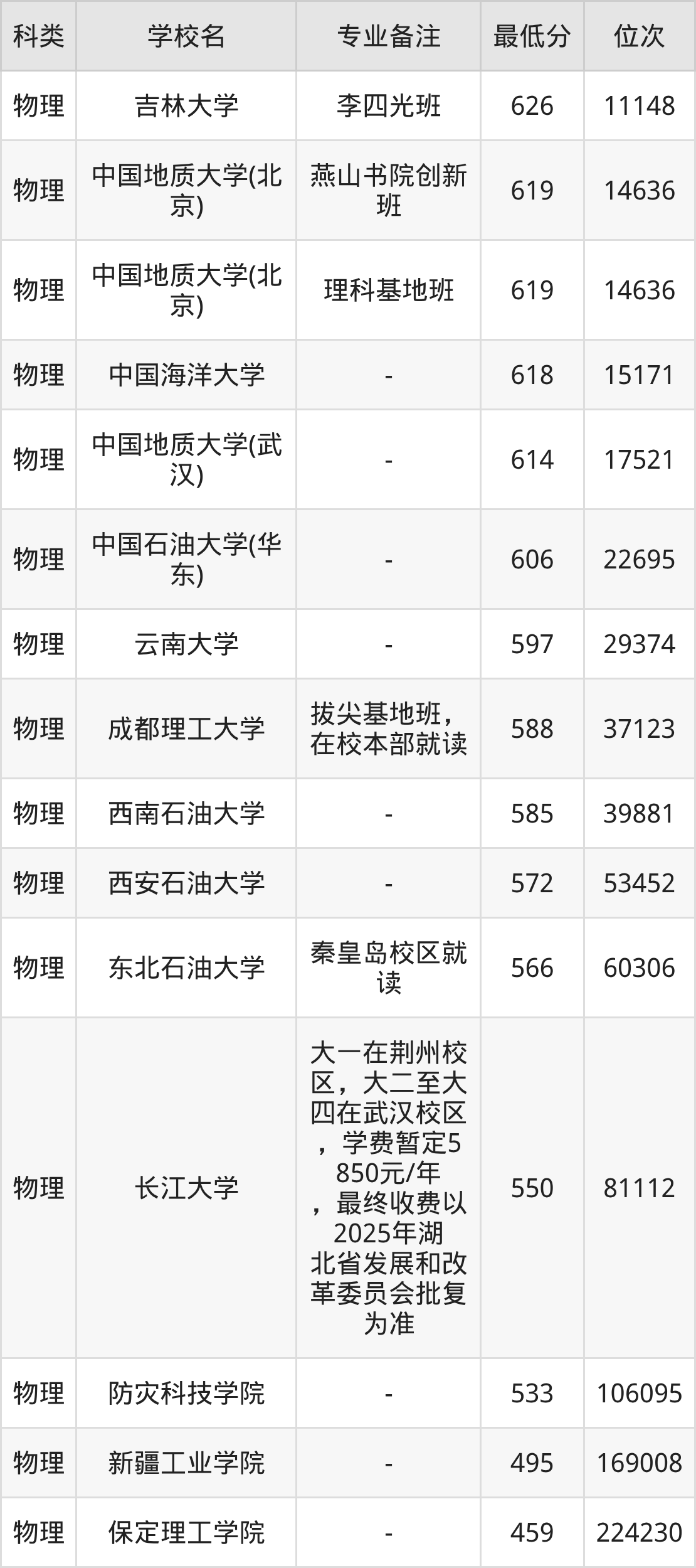 下面是2025年地质学录取分数线Top15一览表: