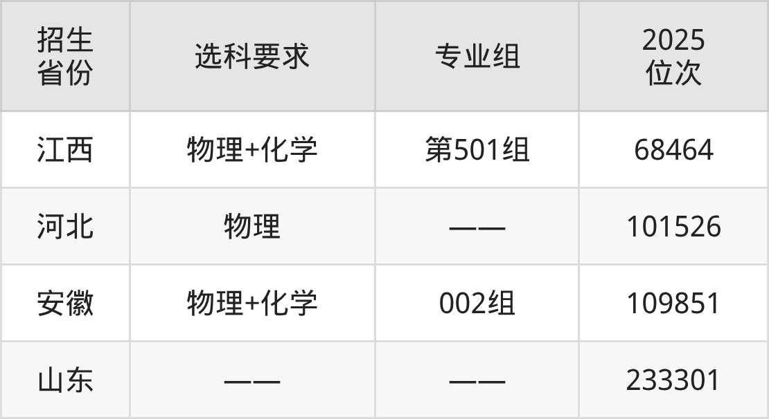 合肥理工学院2025年在全国各省的位次差异较大,最高位次是68464位(江西物理类)、最低位次是233301位(山东)。各省具体位次请看下图: