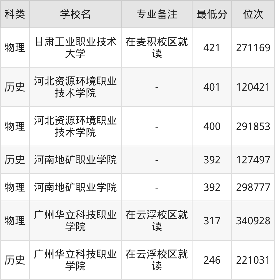 地质调查与矿产普查专业分数最低的民办大学是广州华立科技职业学院,其2025年最低分为246分,考生只要超专科线46分即有概率能被录取。