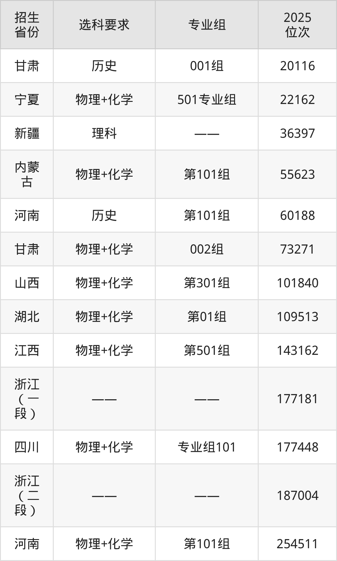 西安理工大学高科学院2025年在全国各省的位次差异较大,最高位次是20116位(甘肃历史类)、最低位次是254511位(河南物理类)。各省具体位次请看下图: