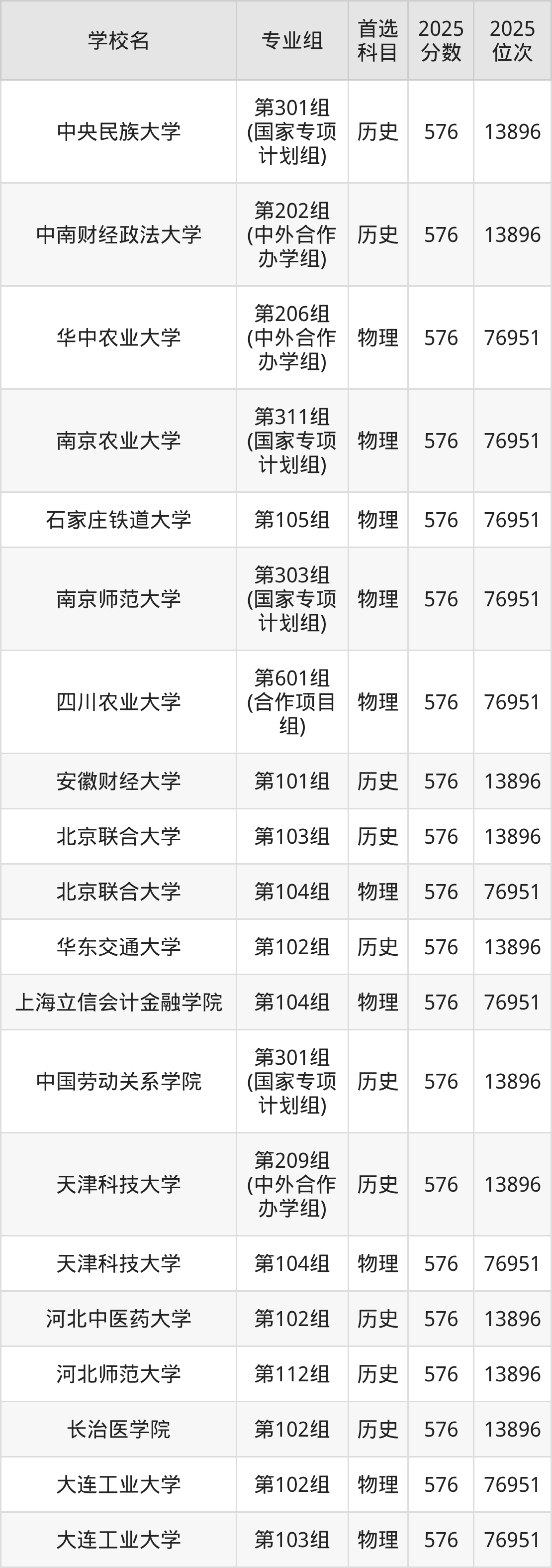 历史类574分可以冲的大学:中央民族大学576分、中南财经政法大学576分、安徽财经大学576分、北京联合大学576分等;较稳妥的大学:陕西科技大学573分、西安建筑科技大学573分、西北政法大学573分、青岛理工大学573分等。