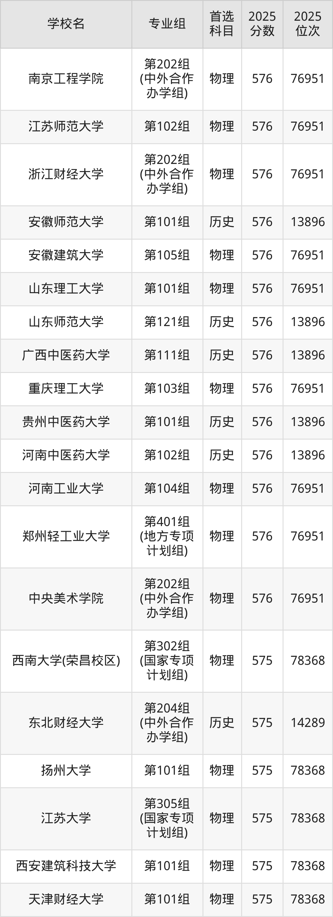 下面老师将以上文整理的其中两个省份为例,为大家具体展示574分左右能上的本科大学名单。