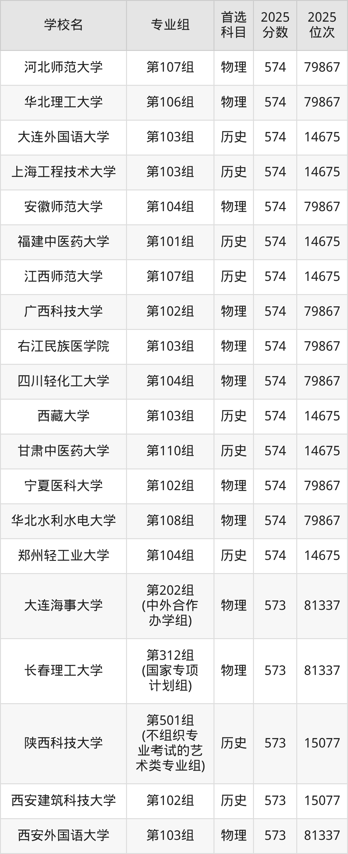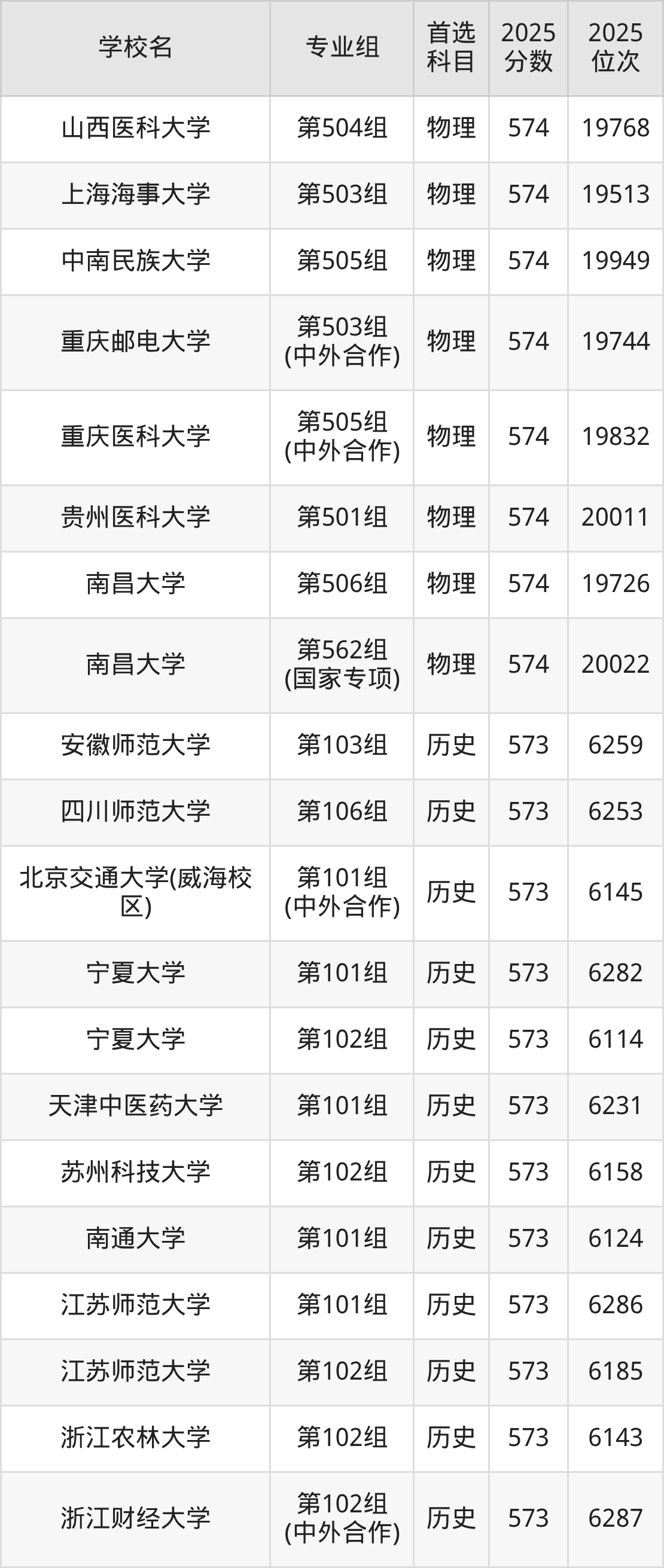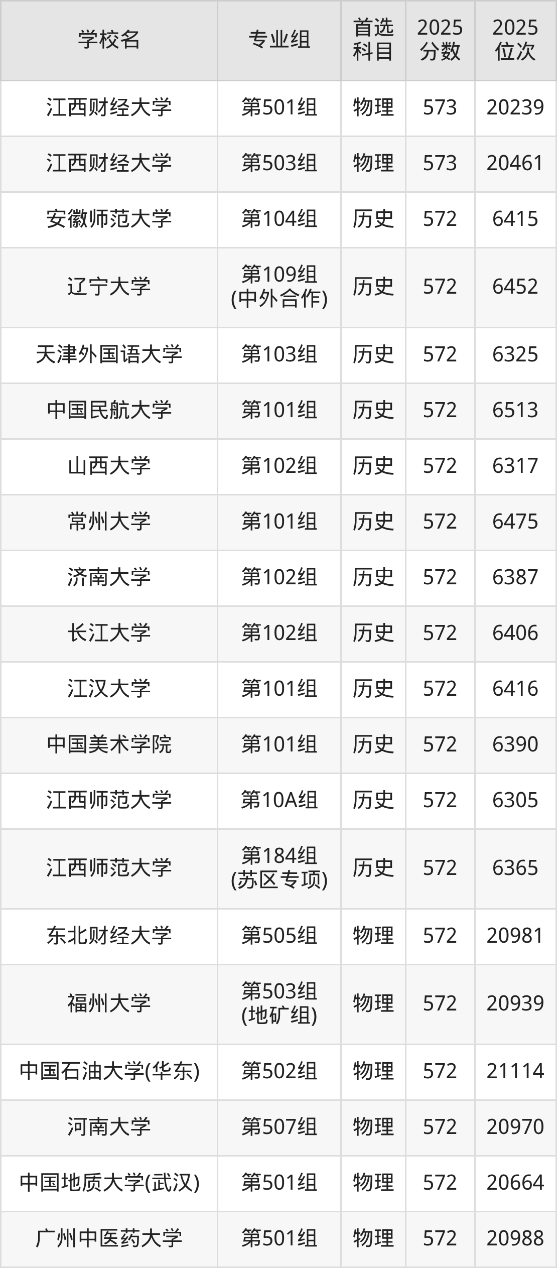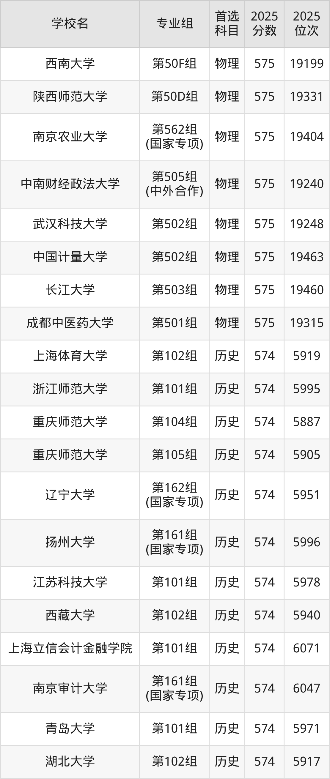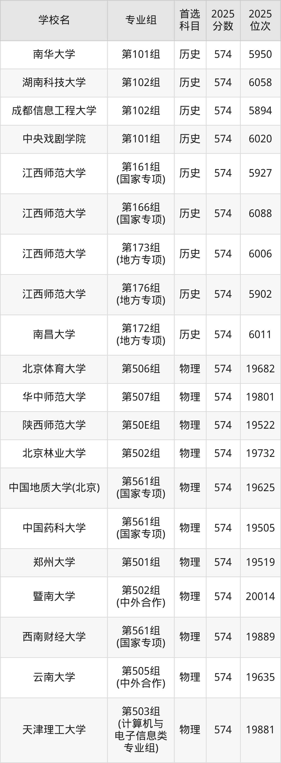 江西高考历史类574分对应的位次排名是5887名-6088名,物理类574分对应的位次排名是19505名-20022名,因此建议2026年位次排在这附近的同学考虑这些大学。